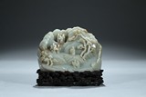 A CELADON JADE CARVED 'NINE ELDERS' BOULDER