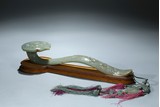 A LARGE CELADON JADE 'BAT AND PEACH' RUYI SCEPTER