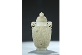 清 白玉薄胎痕都斯坦蓮紋巧雕大瓶