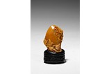 A TIANHUANG CARVED ‘ELDER AND BOY’ BOULDER