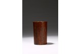 AN INSCRIBED AND ENGRAVED 'LITERATI' HUANGHUALI BRUSHPOT