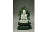 A WHITE JADE AMITAYUS WITH GREEN JADE STAND