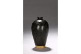 A BRONZE WHITE GROUND BLACK FOLIATE SCROLL DECORATED VASE