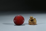 A GILT BRONZE HORSE SEAL AND A CINNABAR LACQUER BOX