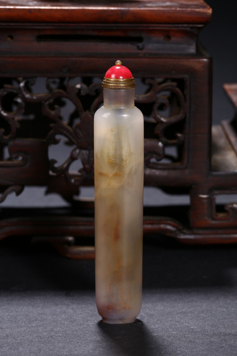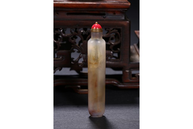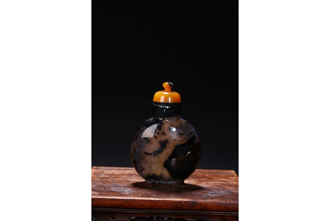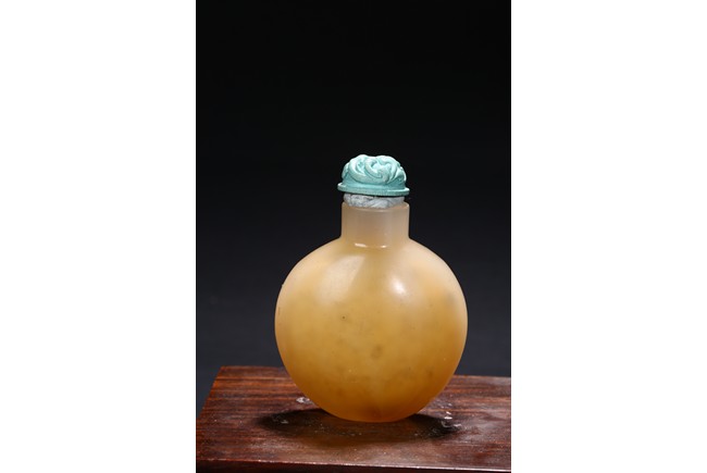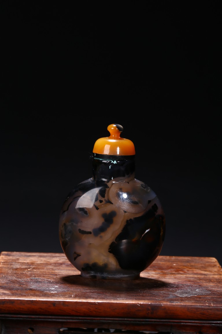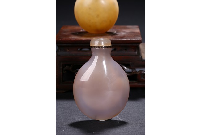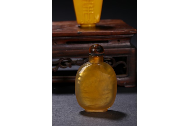 Including of a shadow agate snuff bottle; a yellow glass ‘shou’ snuff bottle; an agate cylindrical snuff bottle; an agate lavender tone snuff bottle; a yellow agate snuff bottle; a translucent yellow tone agate snuff bottle.Qing Dynasty period.