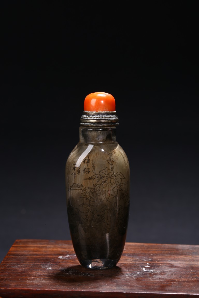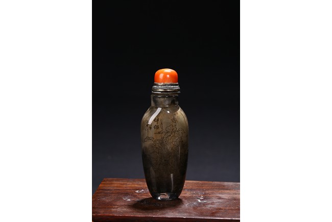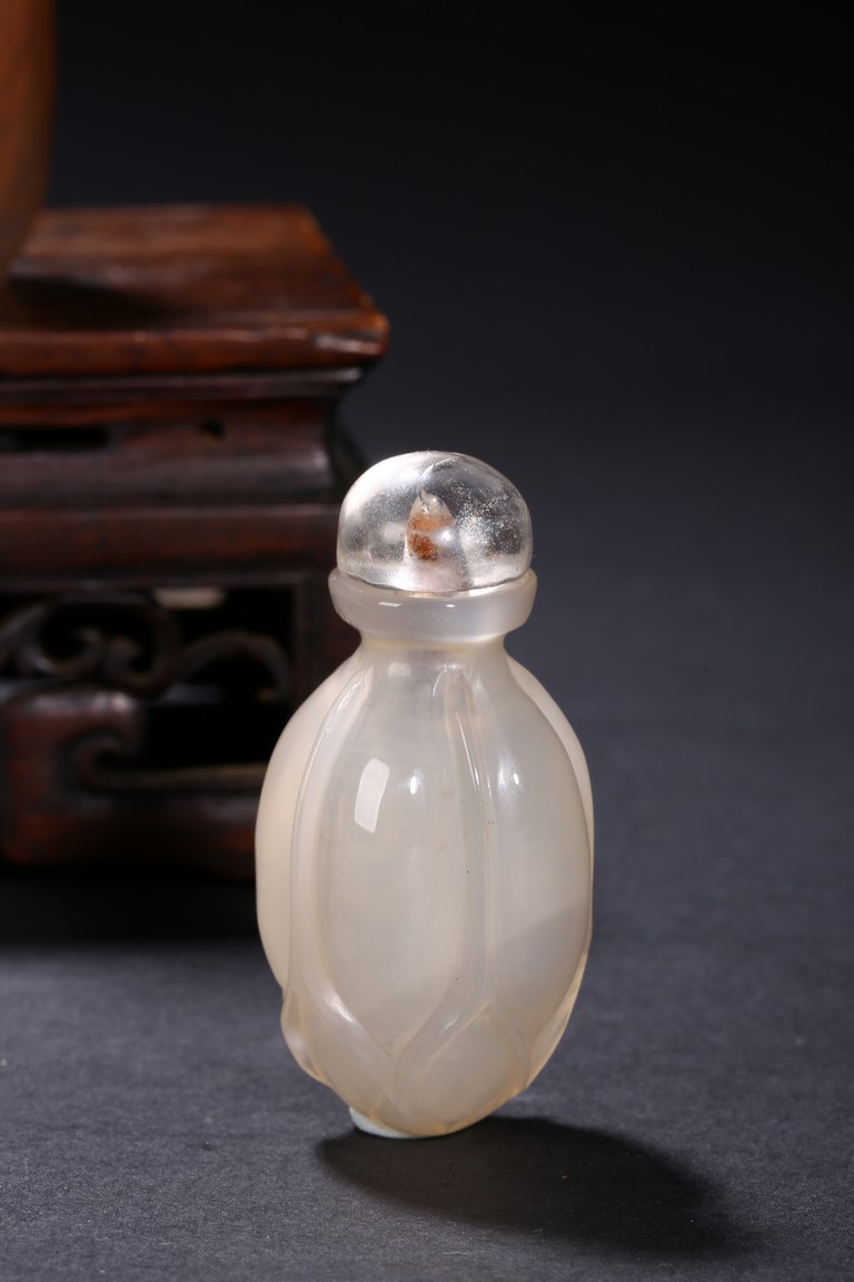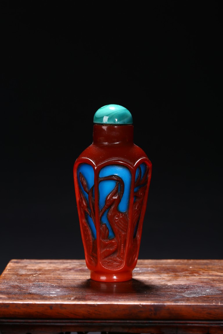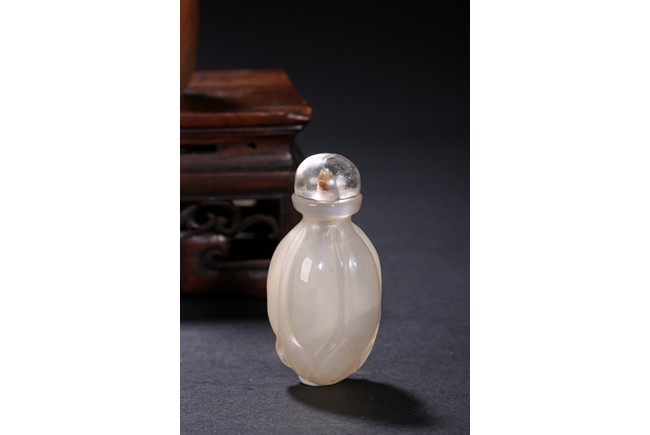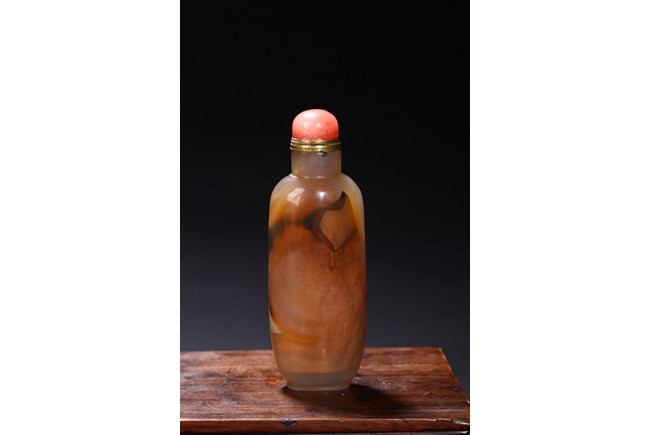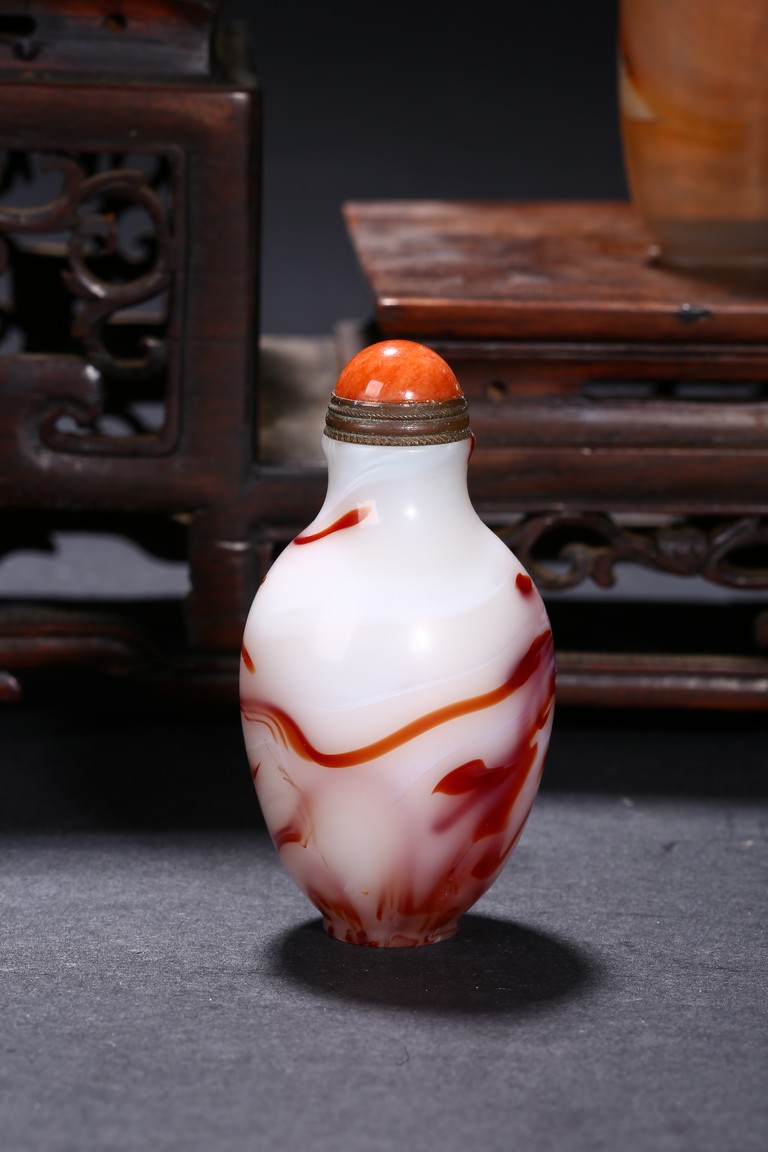 Including three swirl glass snuff bottles; three agate snuff bottles; and one red and blue overlay glass snuff bottle.Qing Dynasty period.