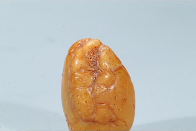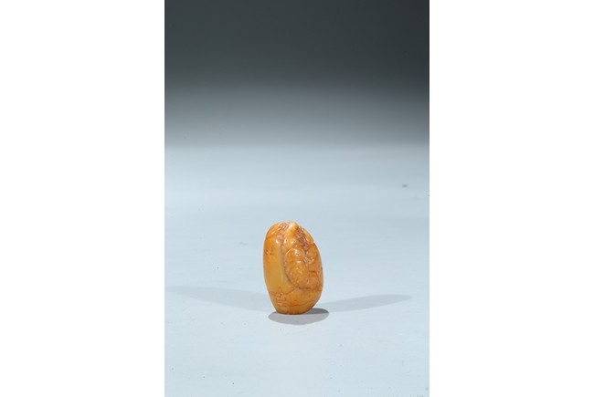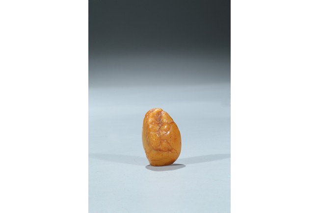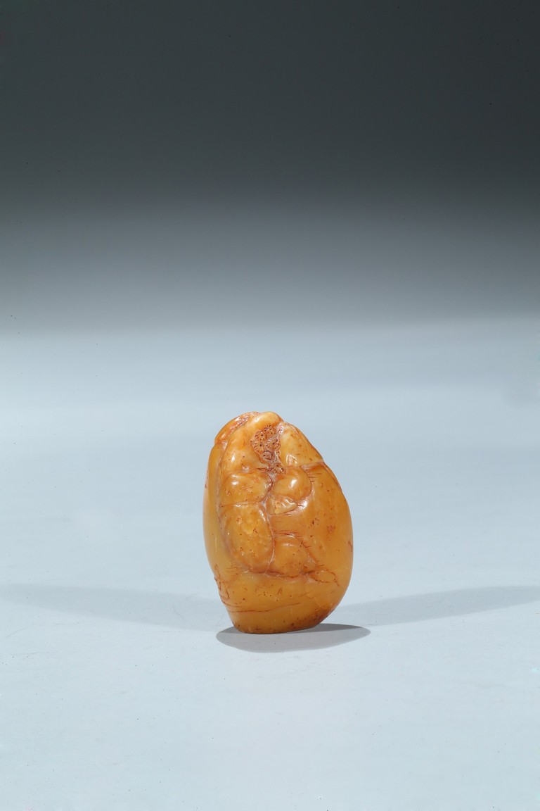 Of irregular naturalistic form, carved with a figure fishing on a boat, with inscription on one side, the base carved one character.