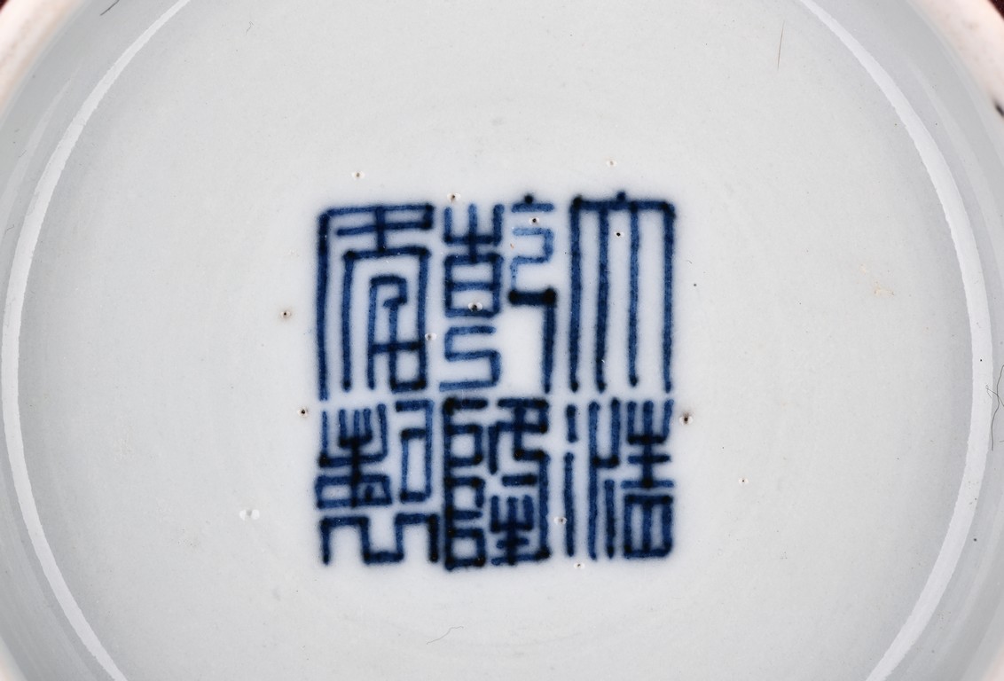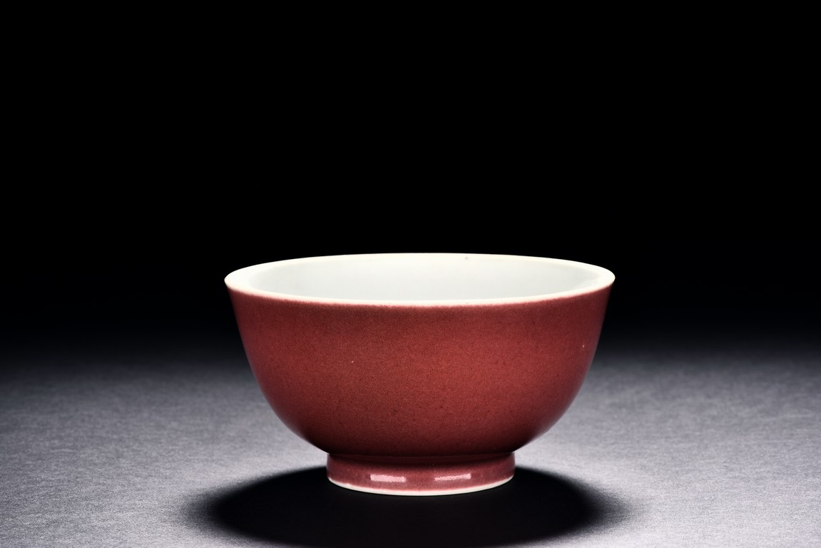 Potted with rounded sides and rising to a slightly flared rim,it is supported on short foot and covered in deep red glaze,with wide glaze to the interior and base. The bottom bears six character 'QIANLONG' mark. Qing Dynasty Period.