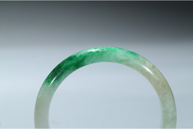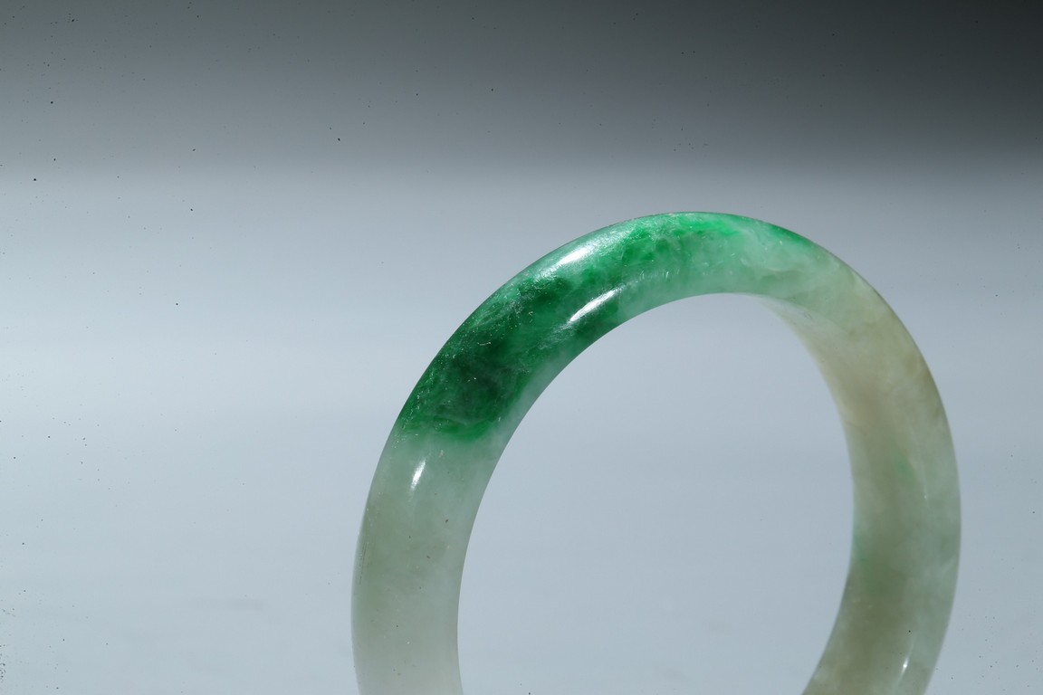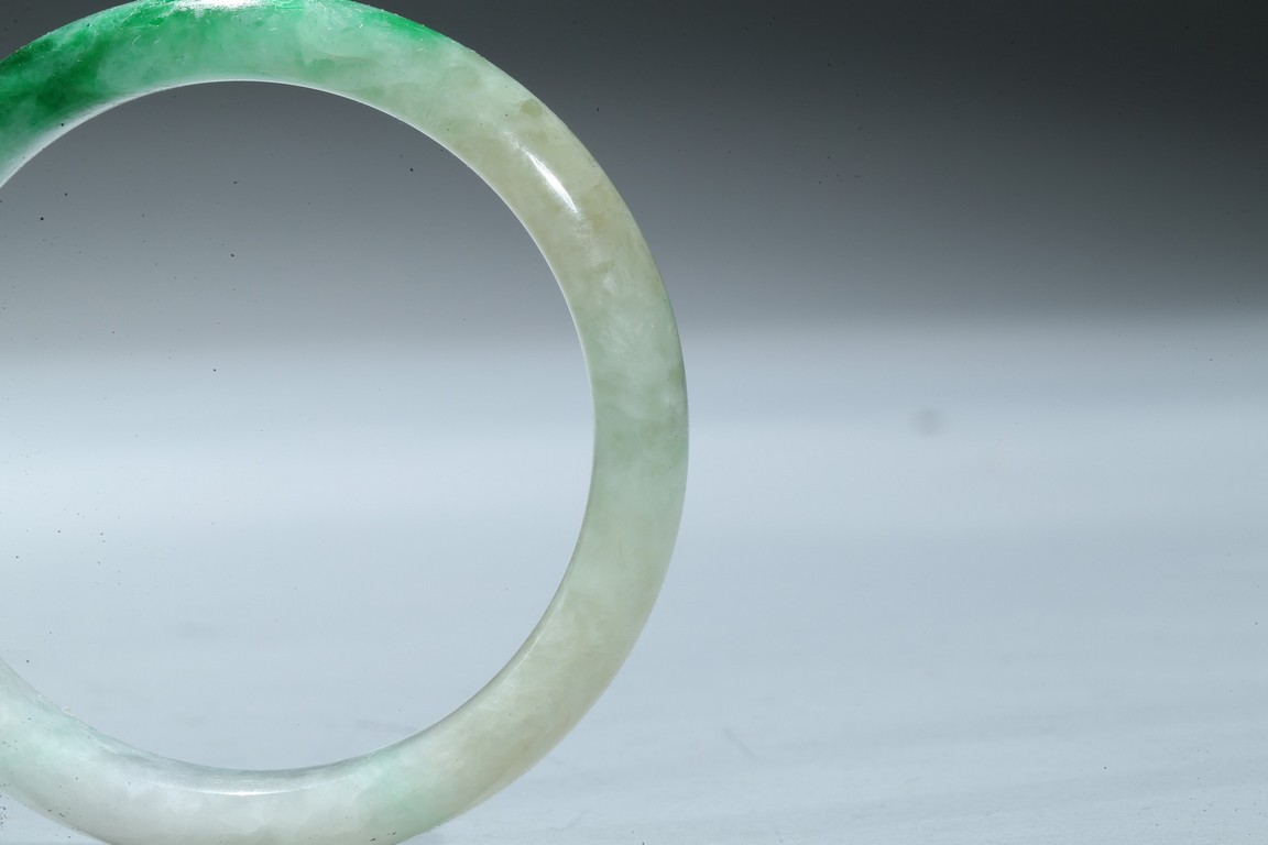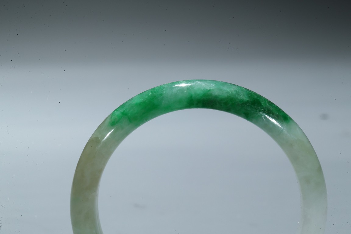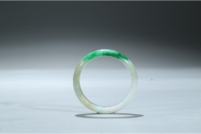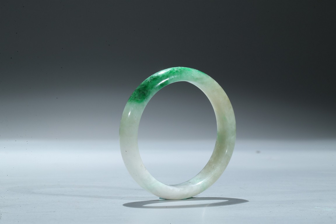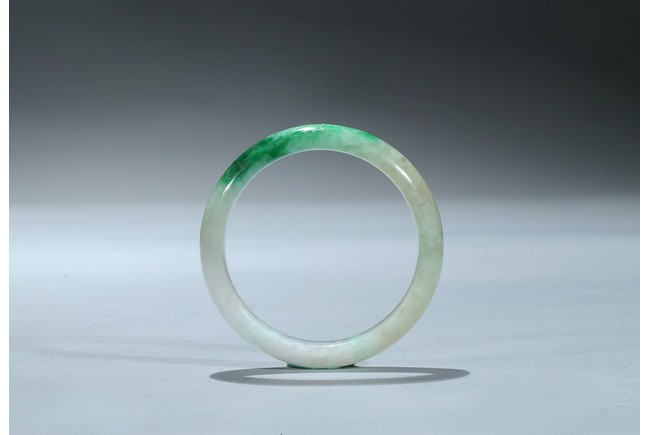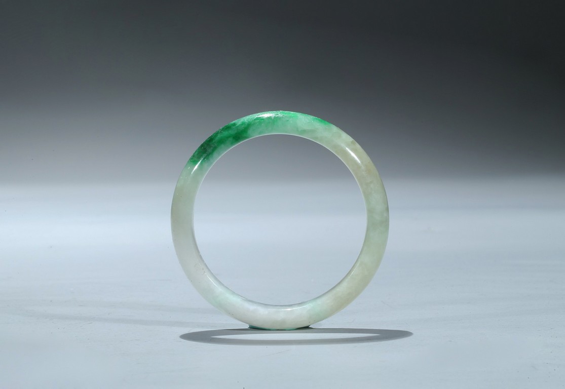 The uncarved bangle is of even white translucent tone suffused with apple-green inclusions.Qing Dynasty period.