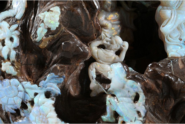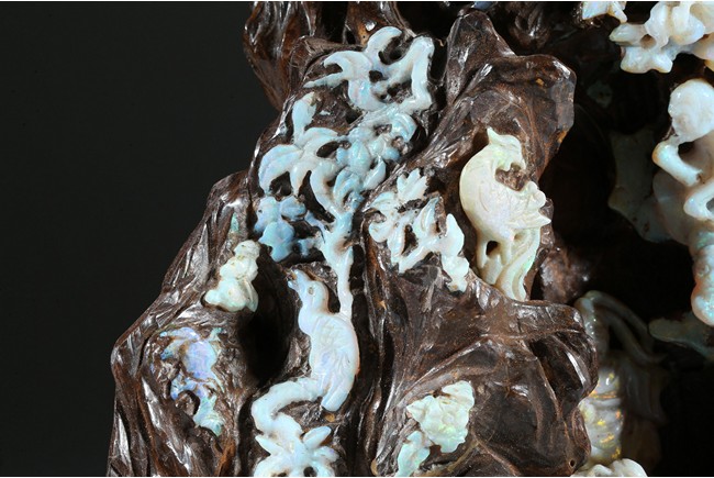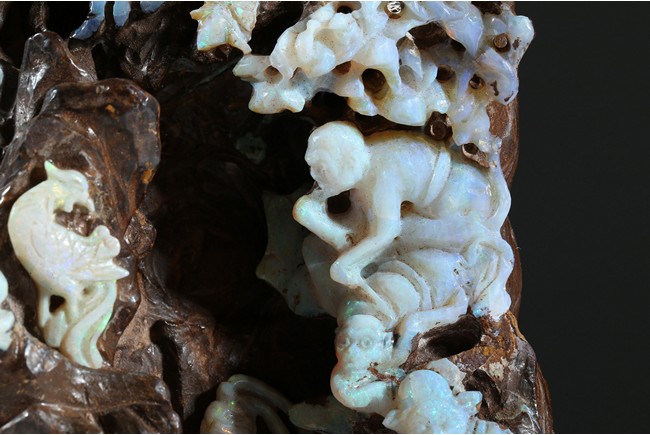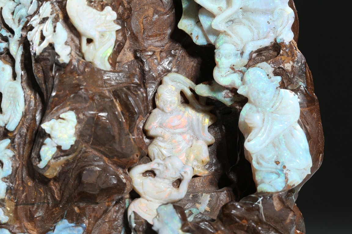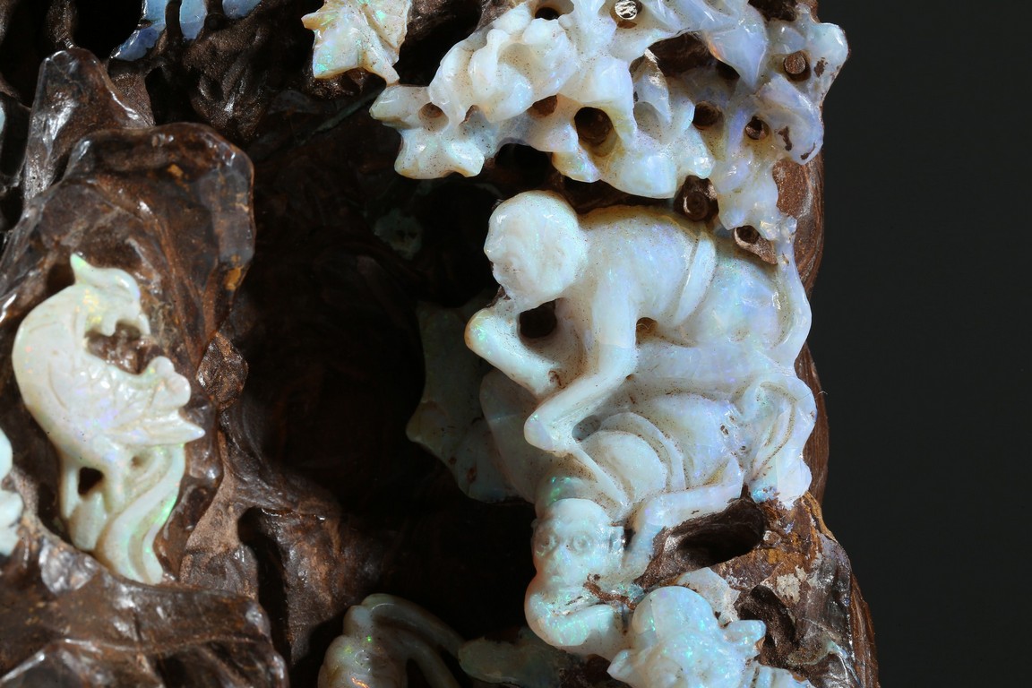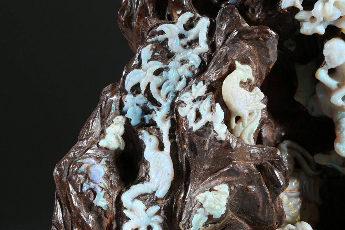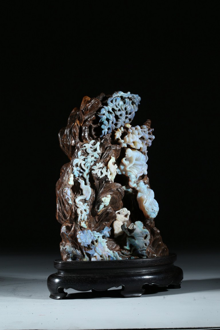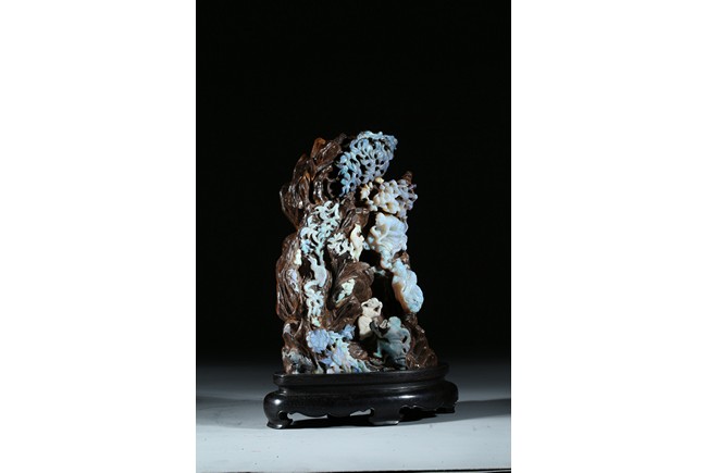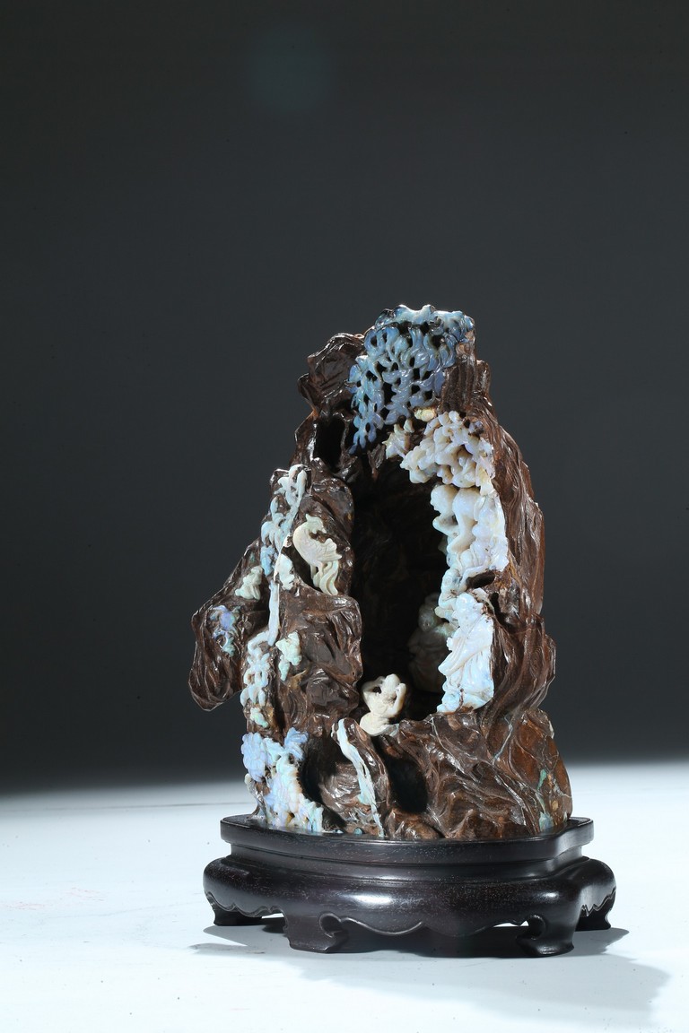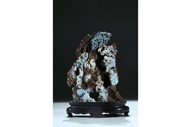 Of mountain boulder form, carved through to depict figures and mythical beasts from Chinese legend Journey to the West. Qing Dynasty period.