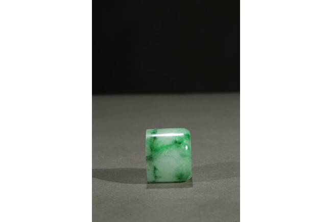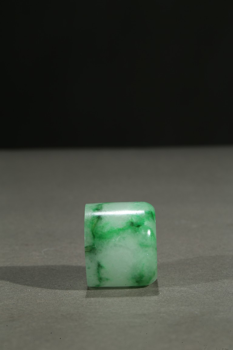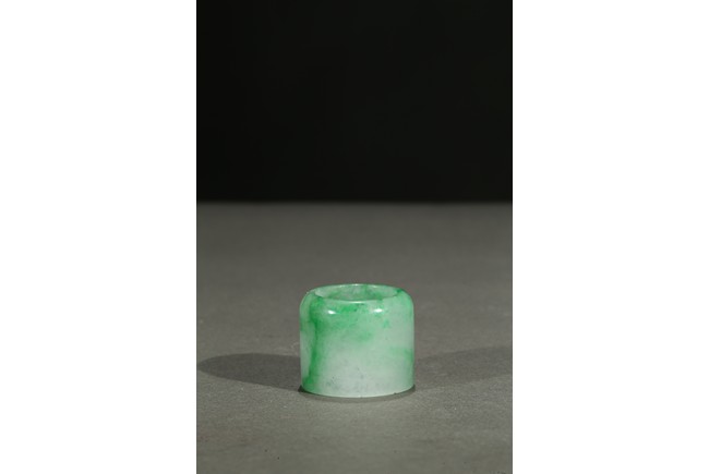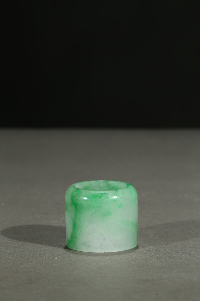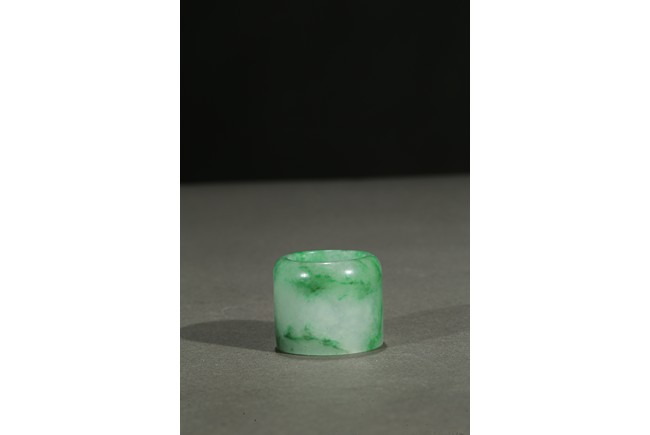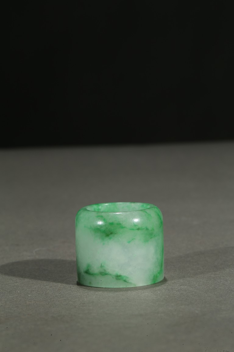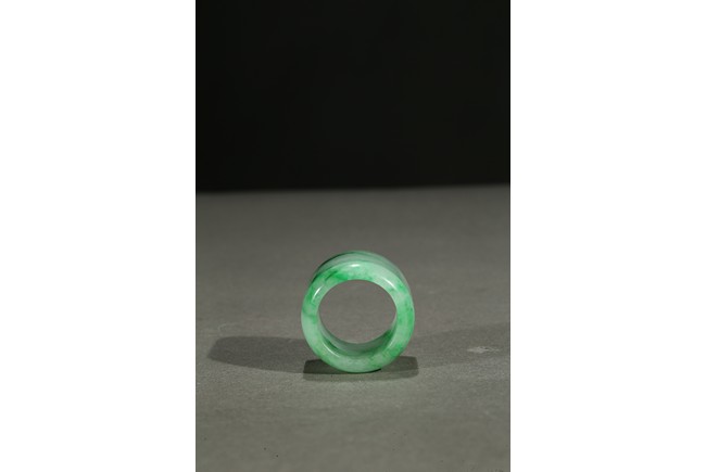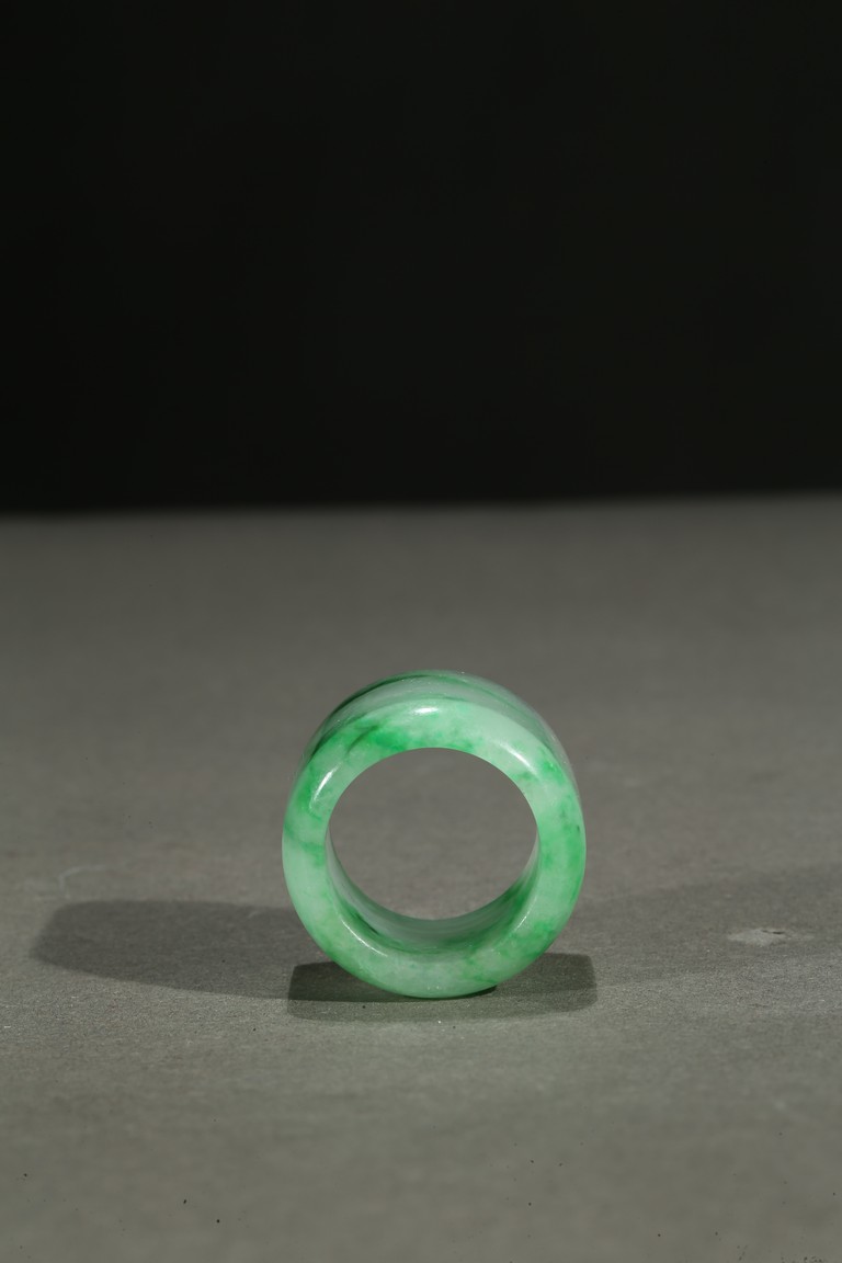 The ring with sides undecorated and with a soft polish,the translucent stone suffused with apple-green inclusions throughout. Late Qing Dynasty period.