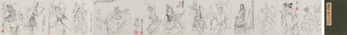 HUANG ZHOU: INK ON PAPER 'FIGURES' ALBUM 黃胄 鋼筆速寫 冊頁