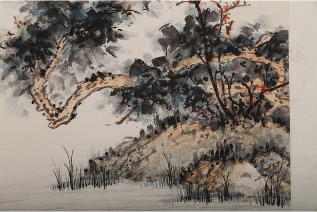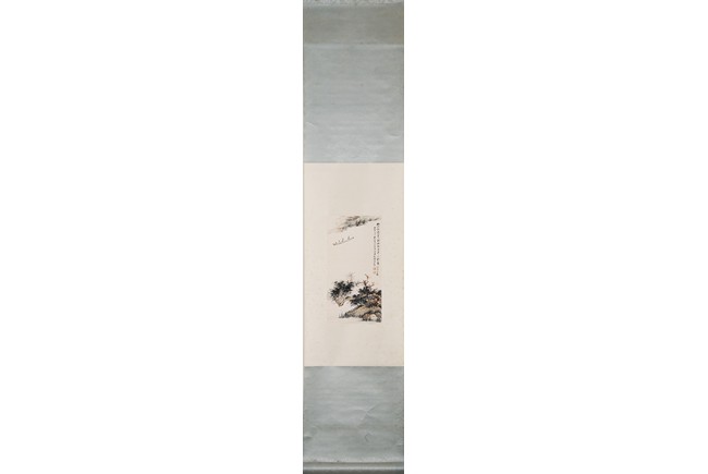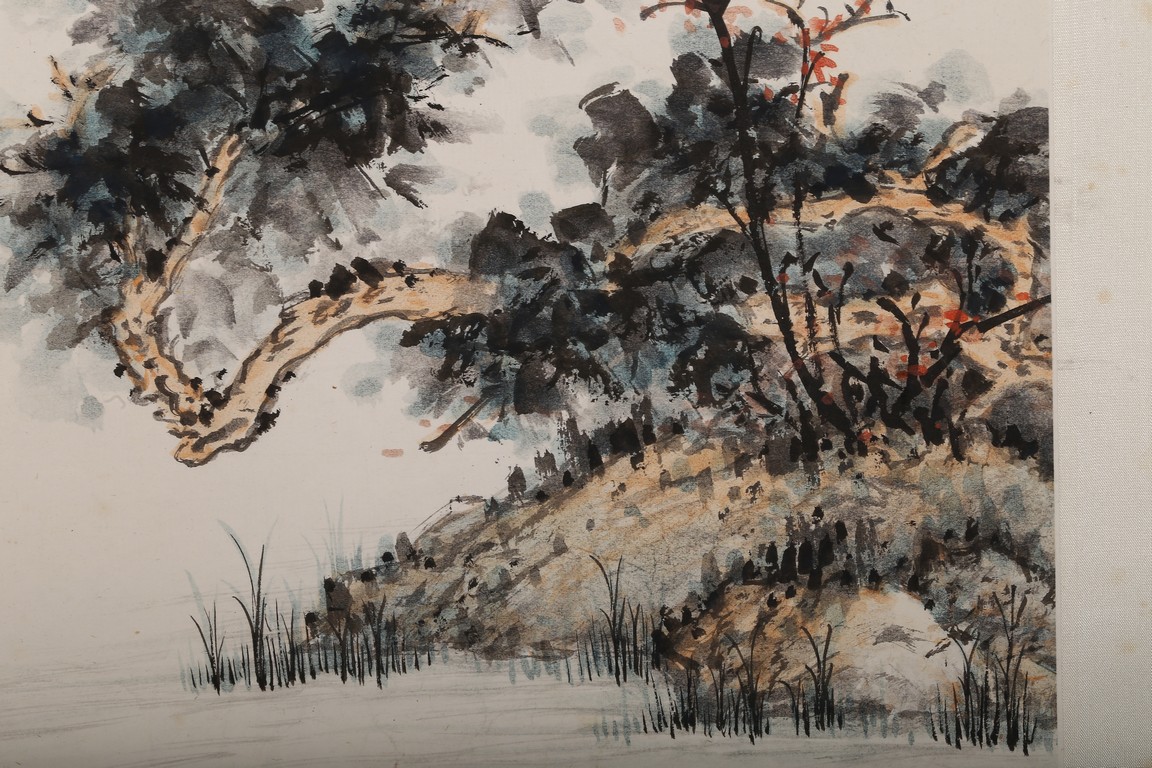 ZHANG DAQIAN: COLOR AND INK ON PAPER 'FIGURES AND LANDSCAPE' PAINTING 张大千 漁舟圖 設色紙本 立軸