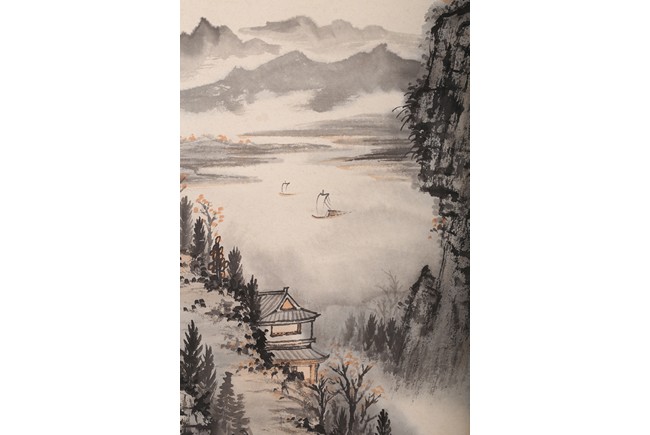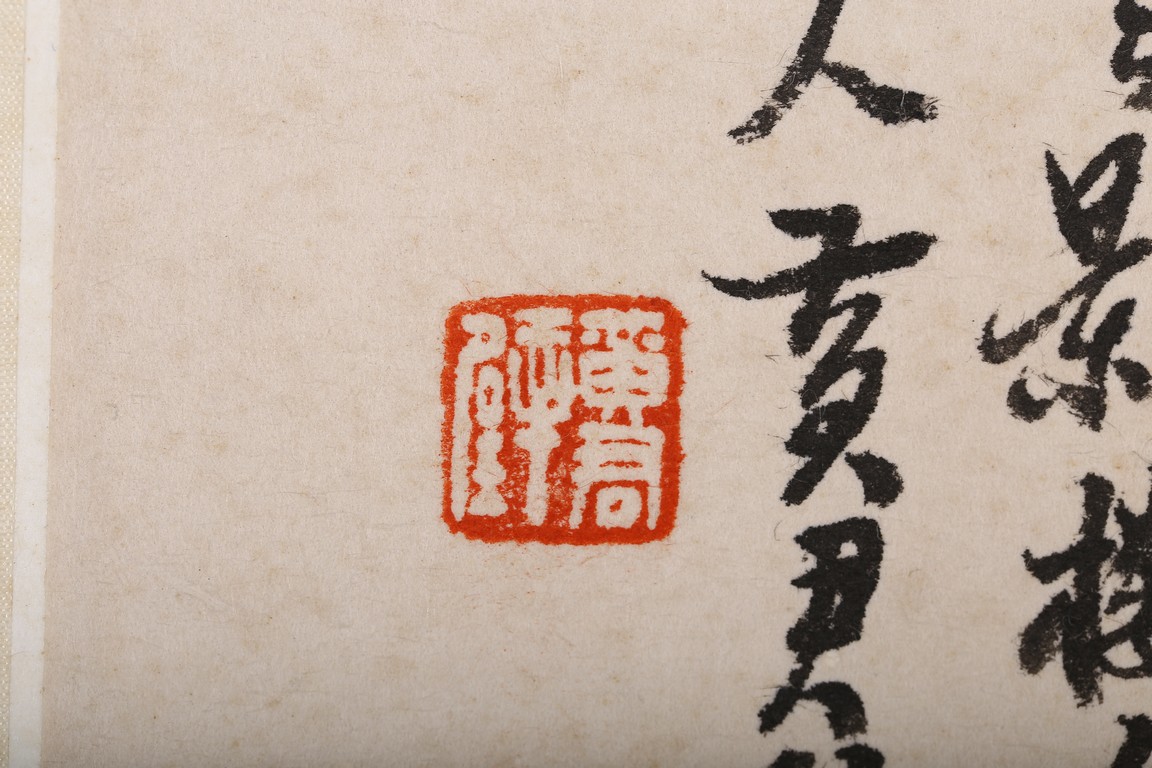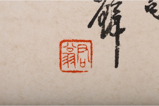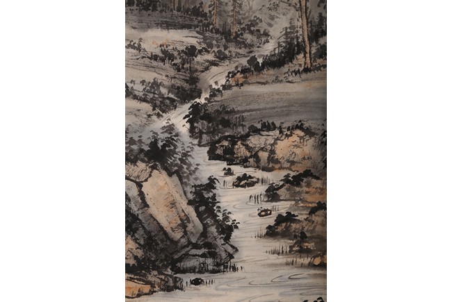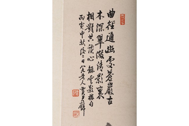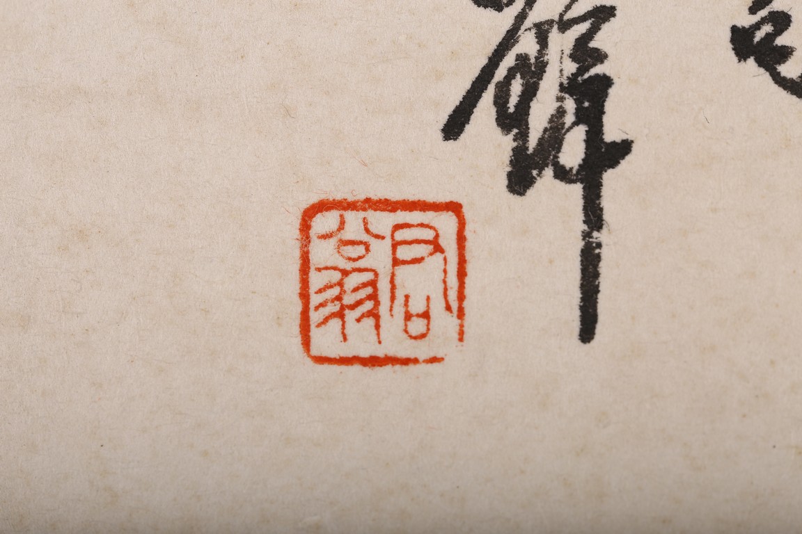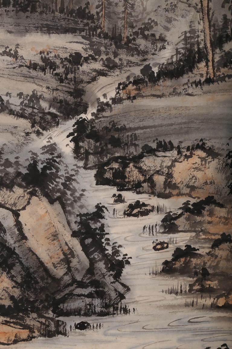 Color and ink on paper. Hanging scroll. landscape. Inscribed and signed,with four seals of the artist.