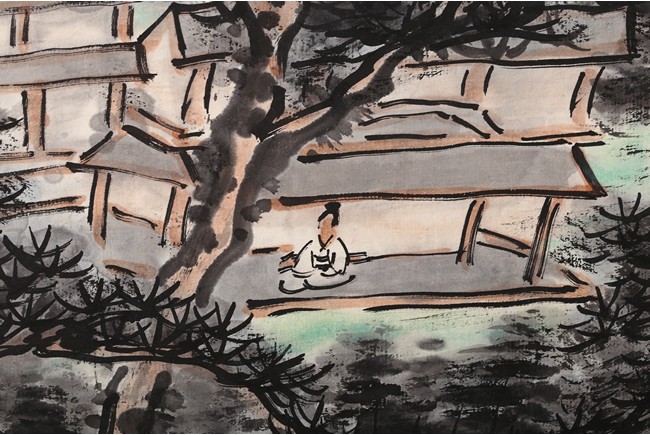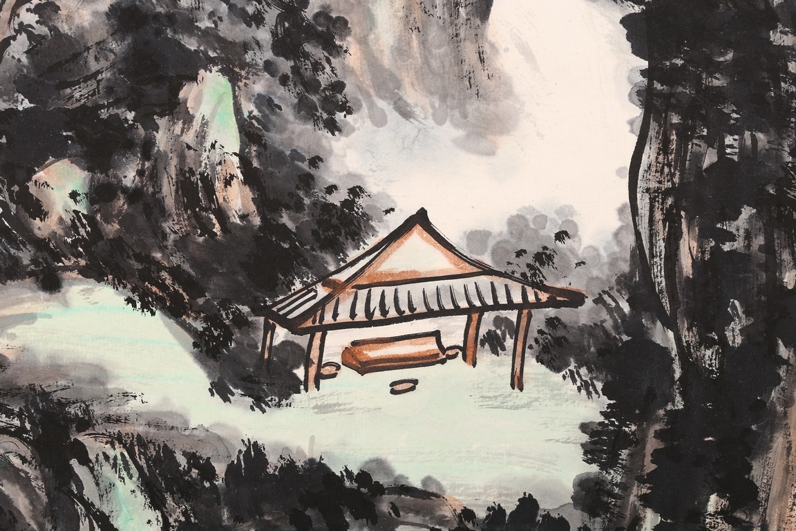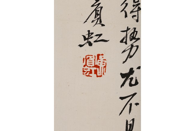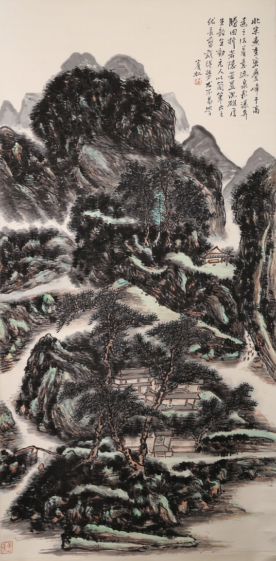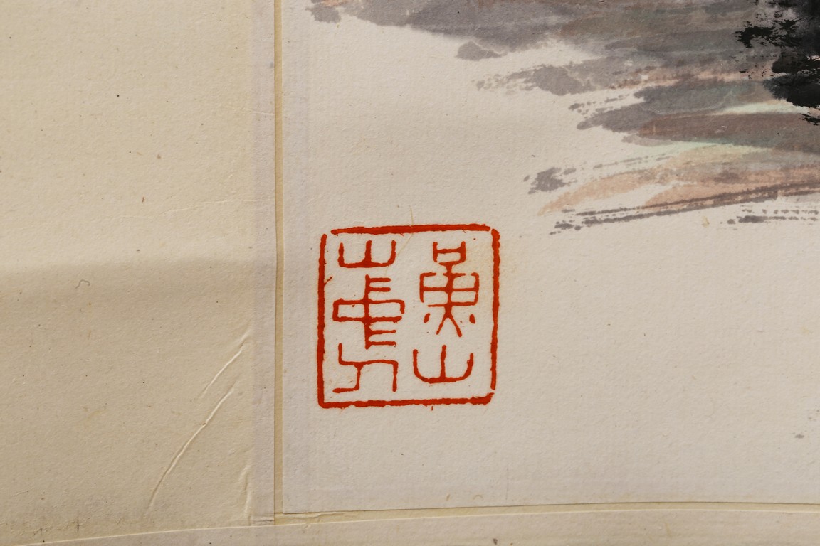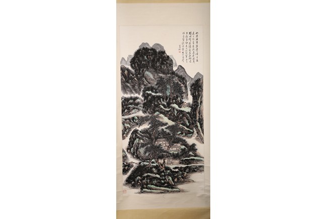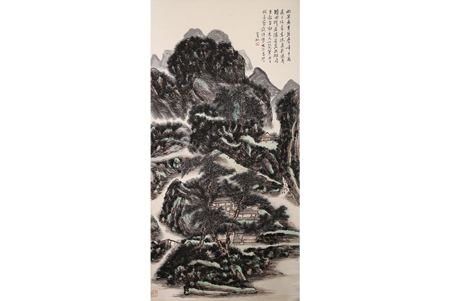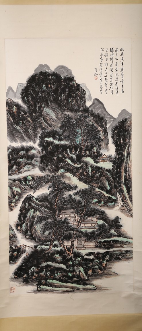 Color and ink on paper. landscape. Hanging scroll. inscribed and signed. with two seals of the artist.
