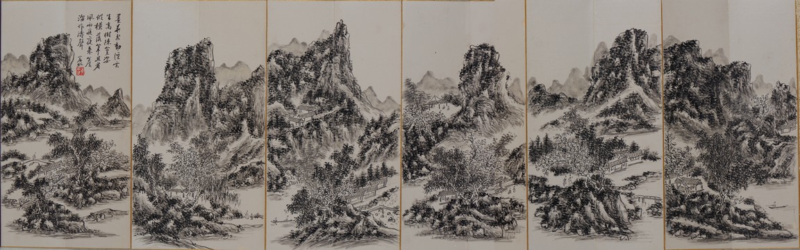HUANG BINHONG: INK ON PAPER 'LANDSCAPE PAINTING 黃賓虹 山水通屏 水墨紙本