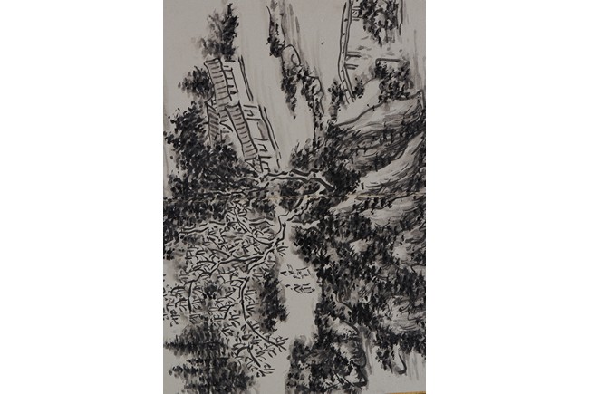 Ink on paper. Landscape.Inscribed and signed Bin Hong, with one seal of the artist.