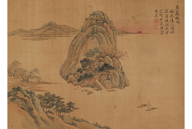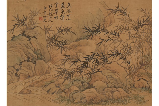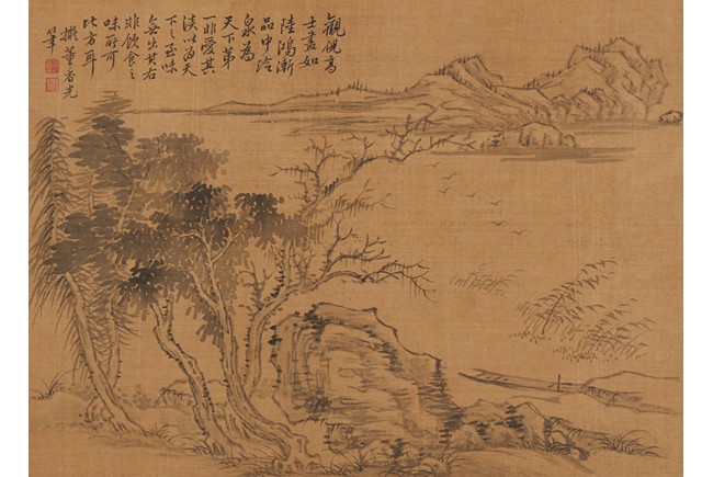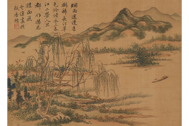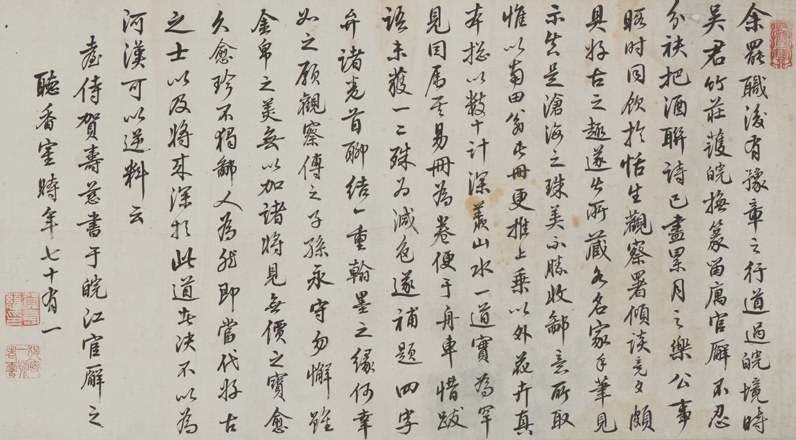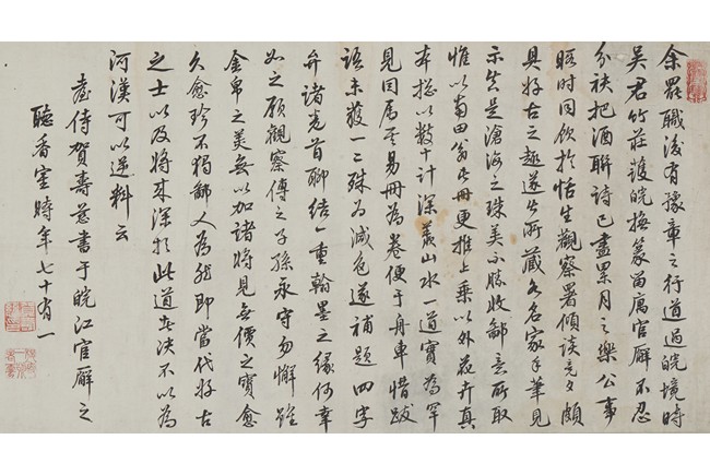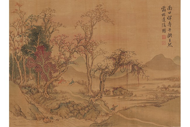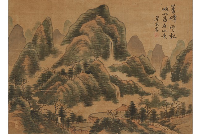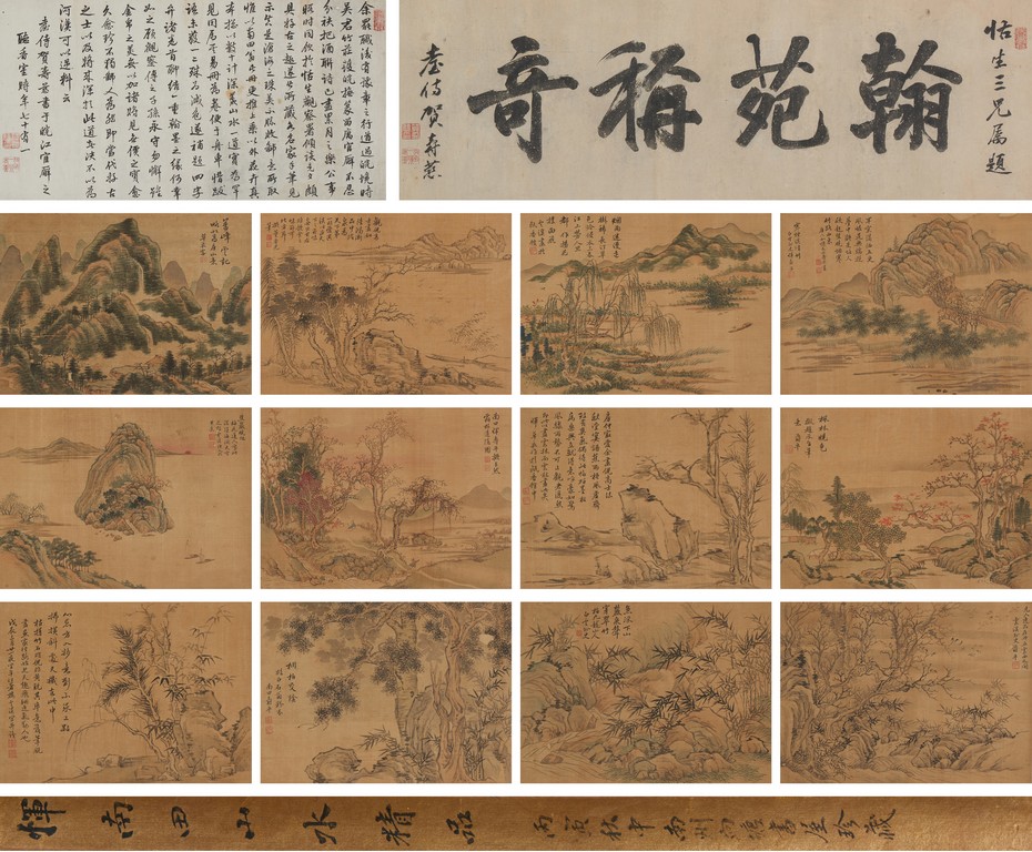 Color and ink on paper. Landscape. Handscroll. Inscribed and signed,with twenty-six seals of the artist.