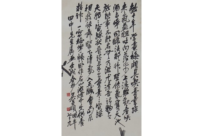 田中慶太郎(1880-1951),在20世紀中日文化交流史上,頗負盛名。他1880年出生於日本京都,從先輩那裏接手“文求堂”書店的經營。文求堂1901年遷至東京。1908年至1911年田中慶太郎在中國北京購置房產,學習漢籍,發掘善本,使文求堂得以成為馳名的經營中國書籍的日本書店。1923年日本關東大地震,文求堂被毀,1927年重建。田中慶太郎會說一口流利的中國話。日本學者說“慶太郎氏既是書店主人又是學者”,在版本學上造詣尤深。1951年田中慶太郎逝世,1953年其長子乾郎亦故去,文求堂不得不於1954年關閉。文求堂主人同中國著名的文學藝術家魯迅、郭沫若、郁達夫、傅抱石有過許多的交往, 為中日文化交流貢獻良多。 出版:《吳昌碩書畫展—吳缶翁生誕一五〇年紀念》,日本槙社文會,1994年,第105頁。 來源:東京"文求堂"田中慶太郎舊藏 Literature: Collection of Calligraphy and Paintings by Wu Changshuo: Commemorating the One Hundred and Fiftieth Anniversary of the Birth of Wu Fouweng, Makisha Bunkai, 1994 P.105 Provenance: Formerly in the collection of Tanaka Keitaro, Tokyo