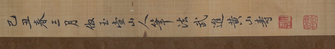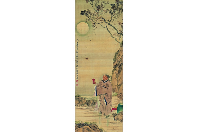 Color and ink on silk. Literati figure. Hanging scroll. Signed and with two seals of the artist.