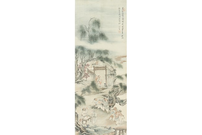 PU RU: COLOR AND INK ON SILK 'NEW YEAR' PAINTING 溥儒 新年圖 設色絹本 立軸