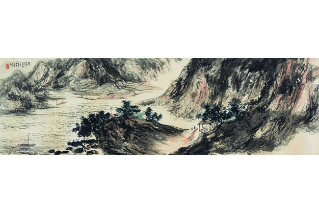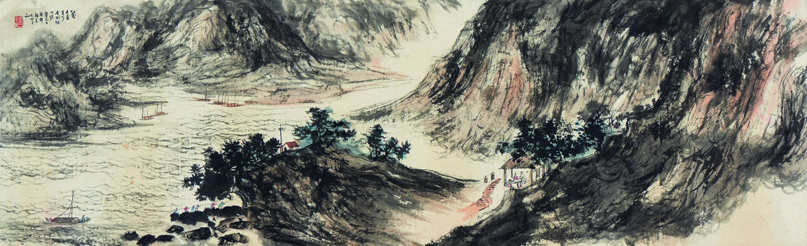 FU BAOSHI: COLOR AND INK ON PAPER 'LANDSCAPE' HORIZONTAL PAINTING 傅抱石 山水 設色紙本 橫幅
