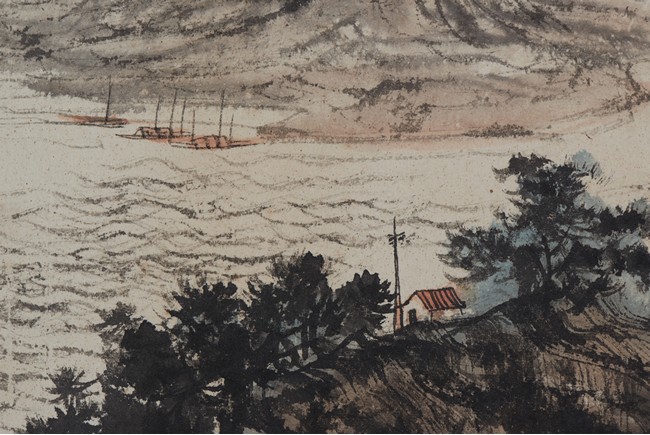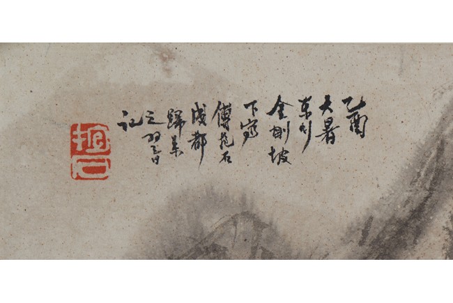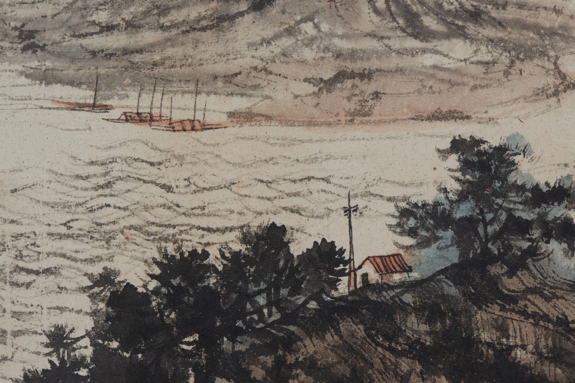 Color and ink on paper. Landscape. Signed and with one seal of the artist.