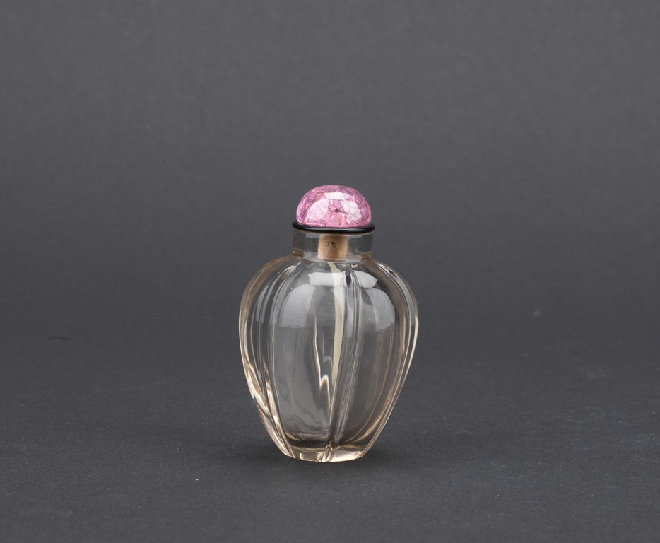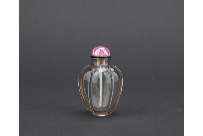 A SMOKY ROCK MELON SHAPED SNUFF BOTTLE 清 茶晶六棱形鼻煙壺