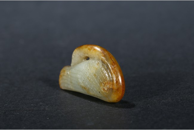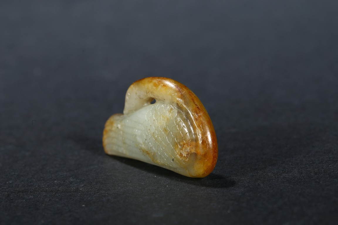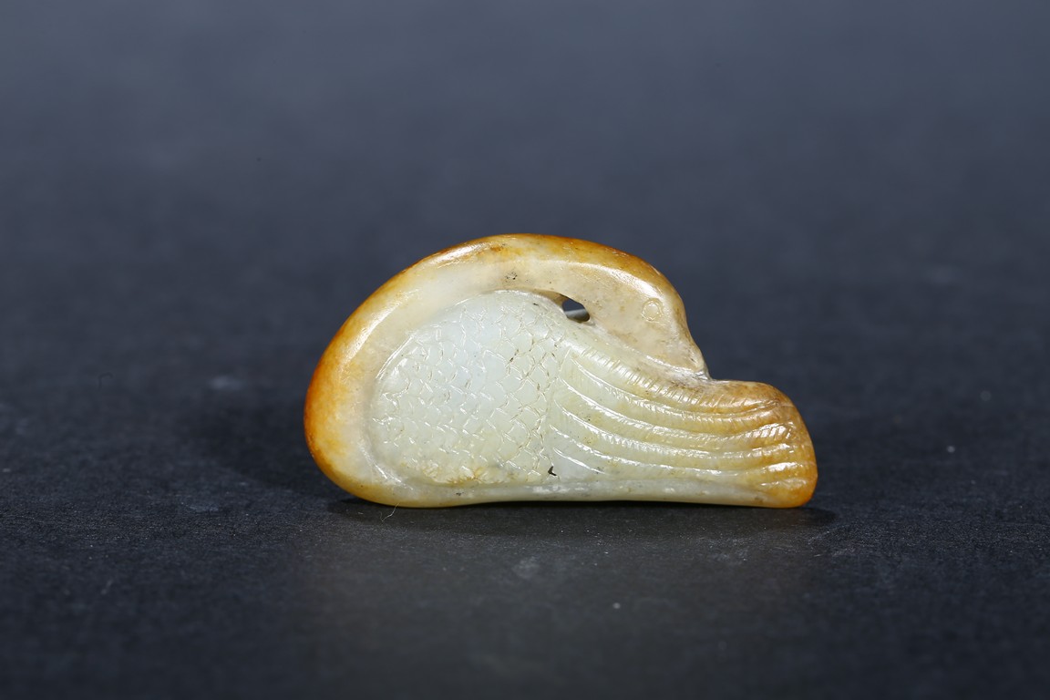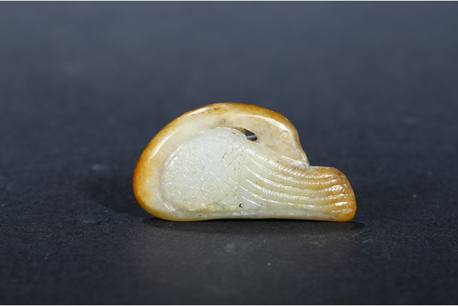 A WHITE AND RUSSET JADE CARVED GOOSE 明 玉鵝