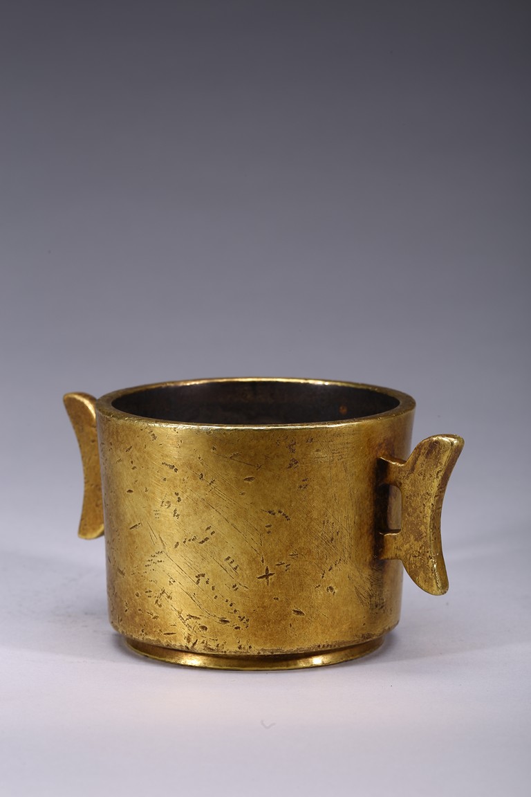 Provenance: Private collection, Nevada 此爐型源自宋代,以其耳如兵器中之戟頭而得名。 《宣德彞器圖譜》稱‘宣皇以之賜刑部尚書,意即刑部平準天下正義,正如執戟以衛邦國,亦有稱系祭門神,以衛皇室’。此爐工精器美,包漿渾厚,捧之十分沉實壓手,微撫即潤,淡雅之間藏有奇光,若連續叩於不同方位,當有獨到旋律縈繞於耳際,音秒如天籟,可謂難得之寶器。相伴於文房,琴棋書畫間,焚香一柱,沉煙裊裊,甚是雅緻。來源:內華達藏家提供