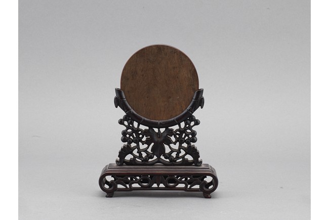 A BAMBOO VENEER CIRCULAR SCREEN PANEL 清 貼竹黃小圓插屏