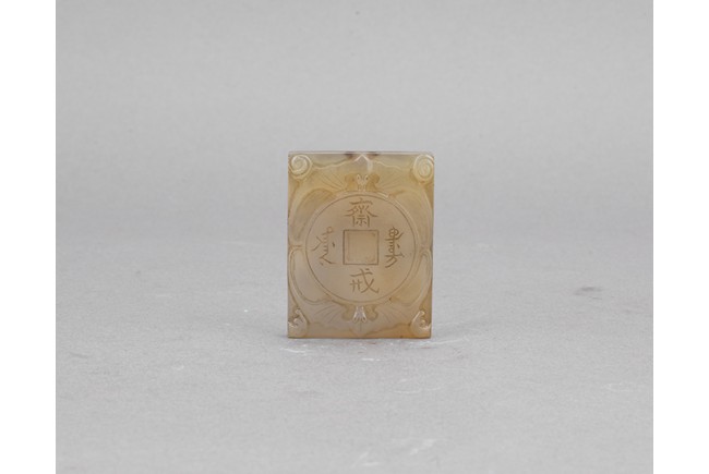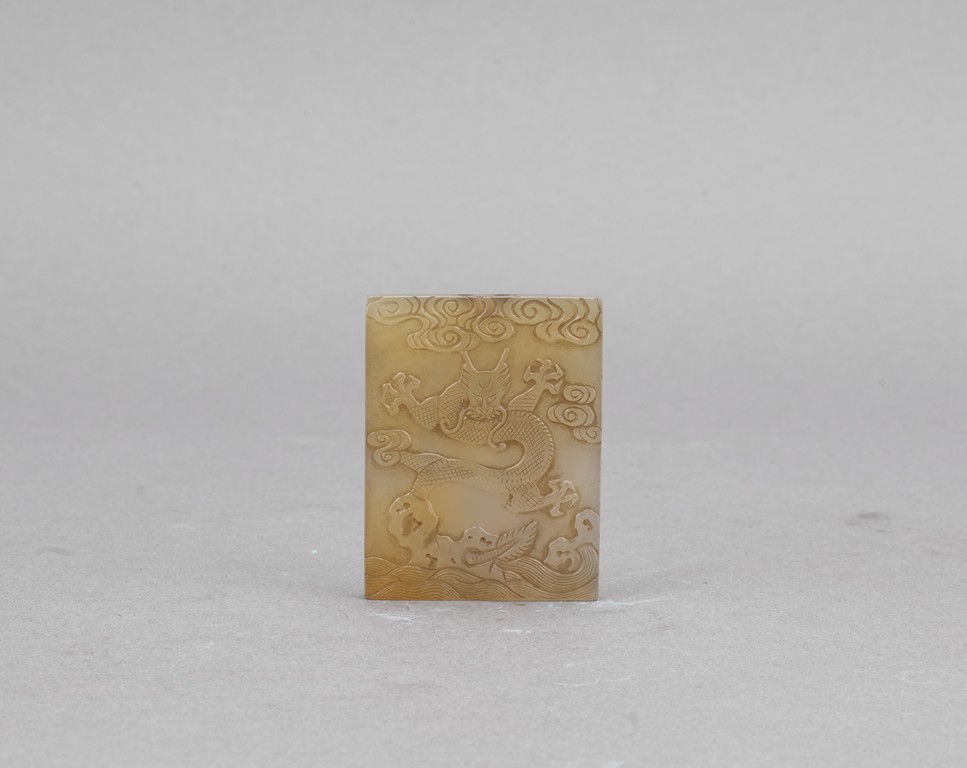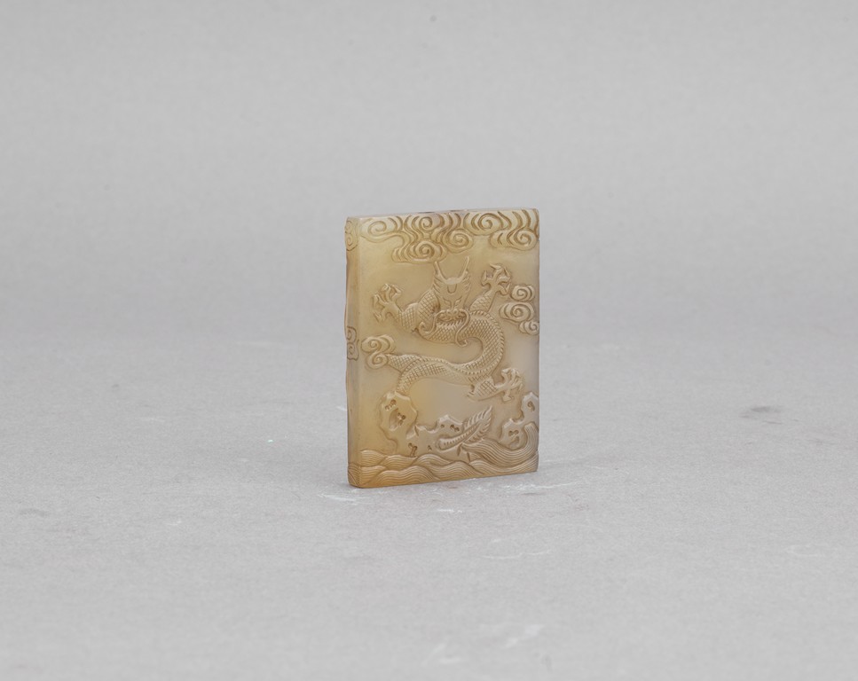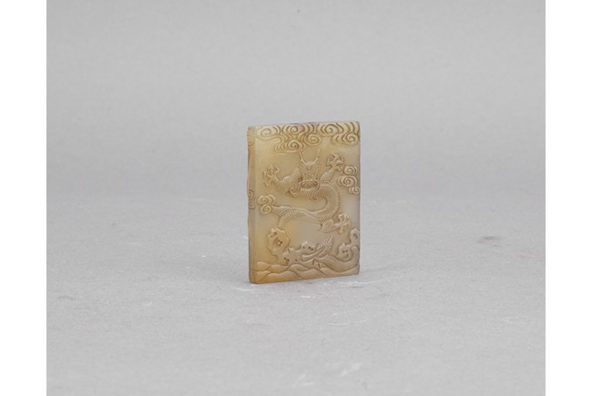 Carved on one side with dragon emerging from sea and two character zhai jie on the other side. Qing Dynasty period.