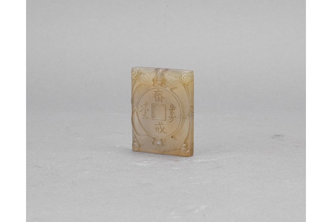AN AGATE CARVED 'ZHAIJIE' PENDANT    清 瑪瑙海水龍紋齋戒牌