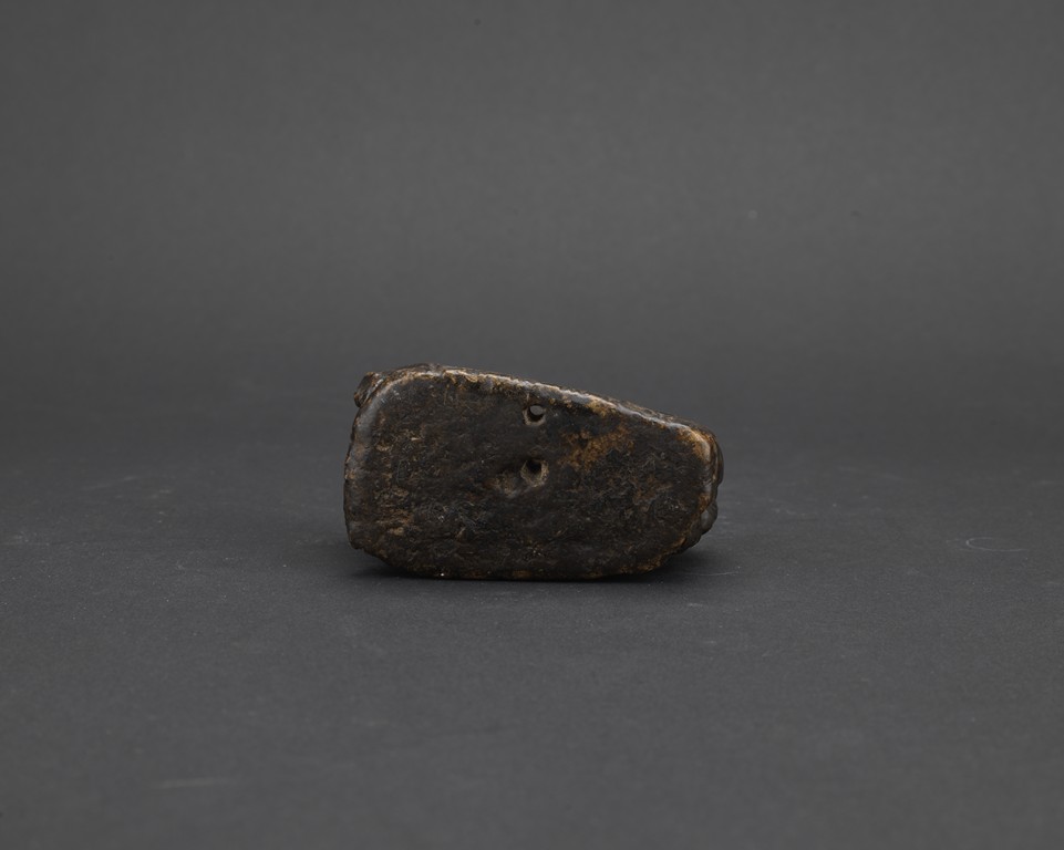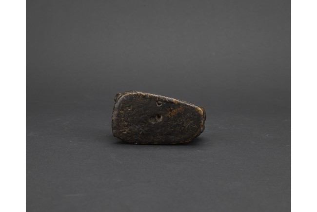 此件香插採用黑石雕刻而成,用於佛教寺廟供臺之上,香燭插於象身背部。象身背部雕出圓孔用於插香,跪俯於石臺。