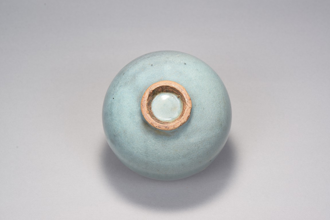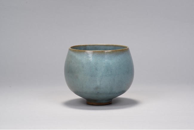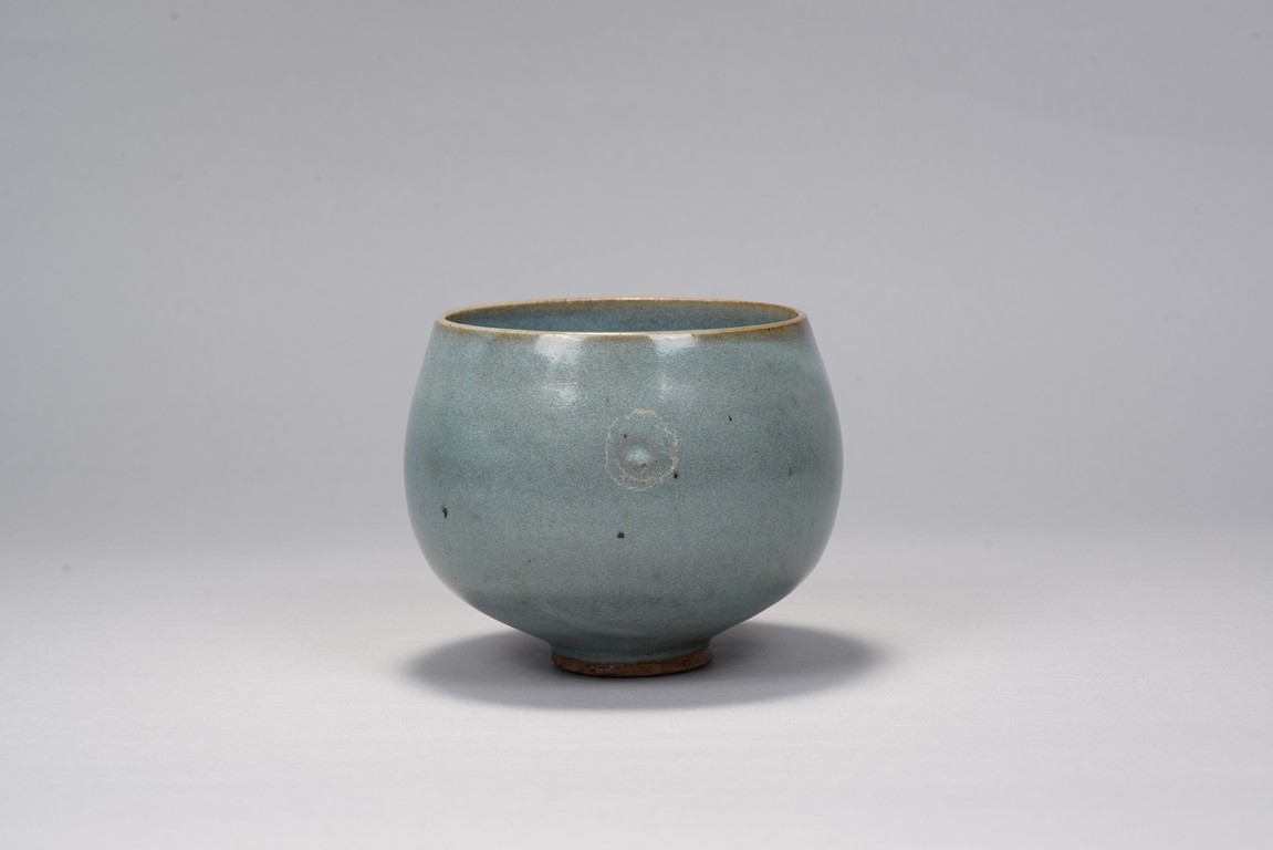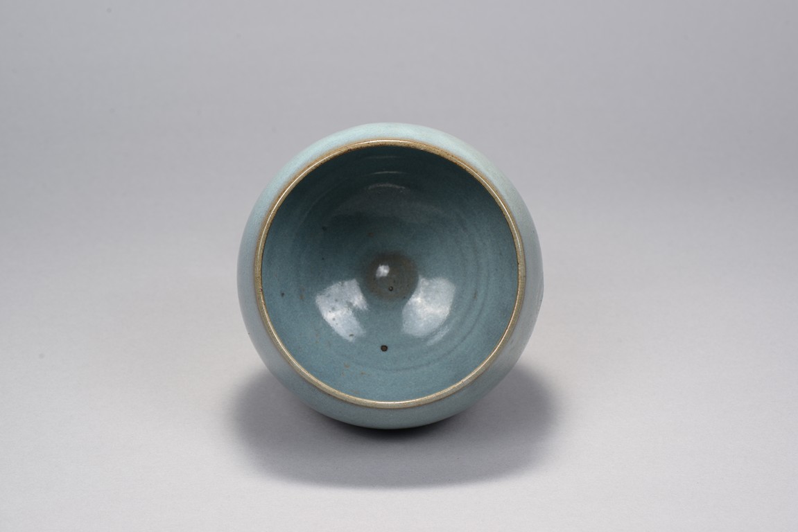 Rising from deep rounded sides from the short circular foot ring to slightly incurved rim, overall suffused with an attractive sky-blue and thinning to the rim. Song Dynasty period.