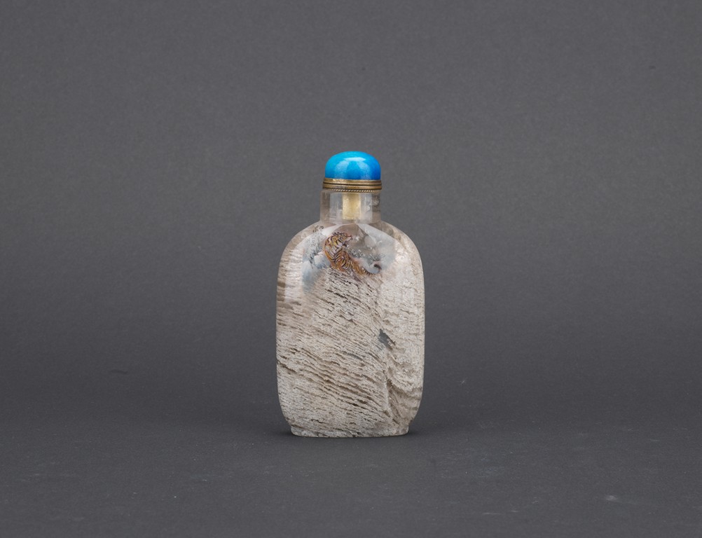 Of rounded rectangular form, finely painted with a tiger with head turned back in snowy landscape, with inscription and signature dated to year of 2006.
