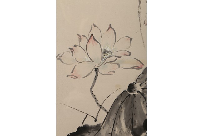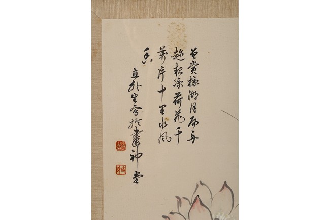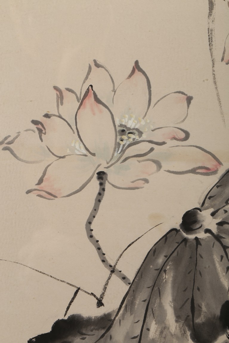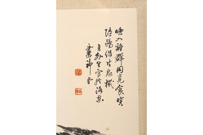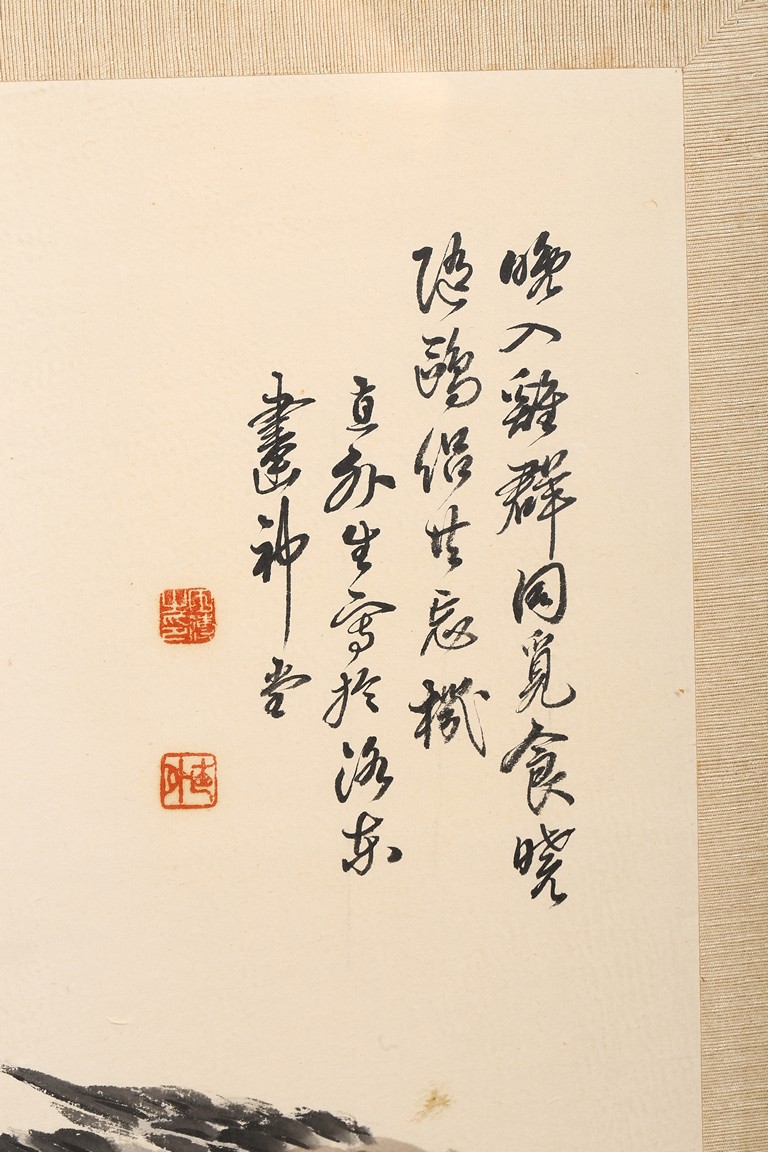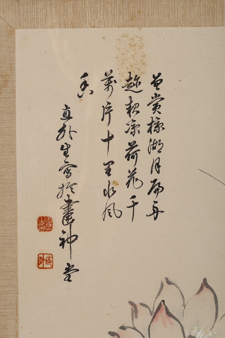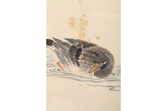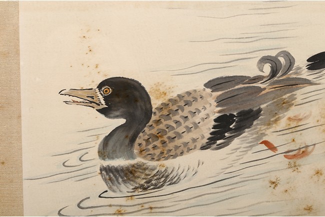 Set of four color and ink on paper. Mandarin Duck. Framed. Inscribed and signed, with total of nine seals of the artist.