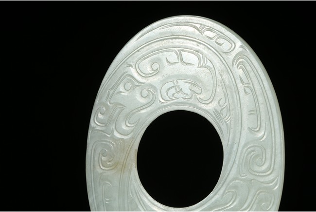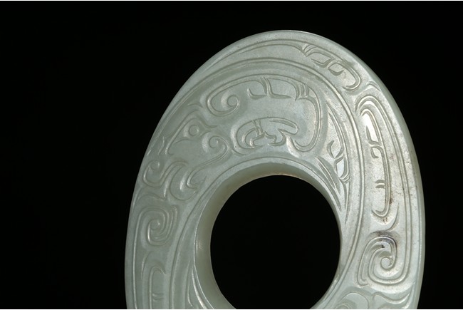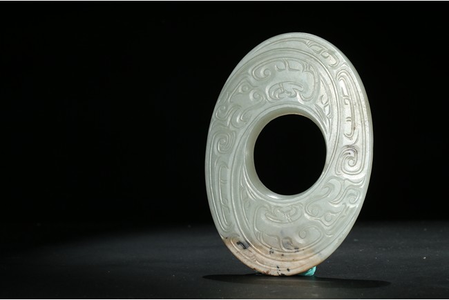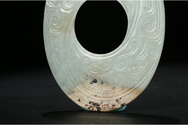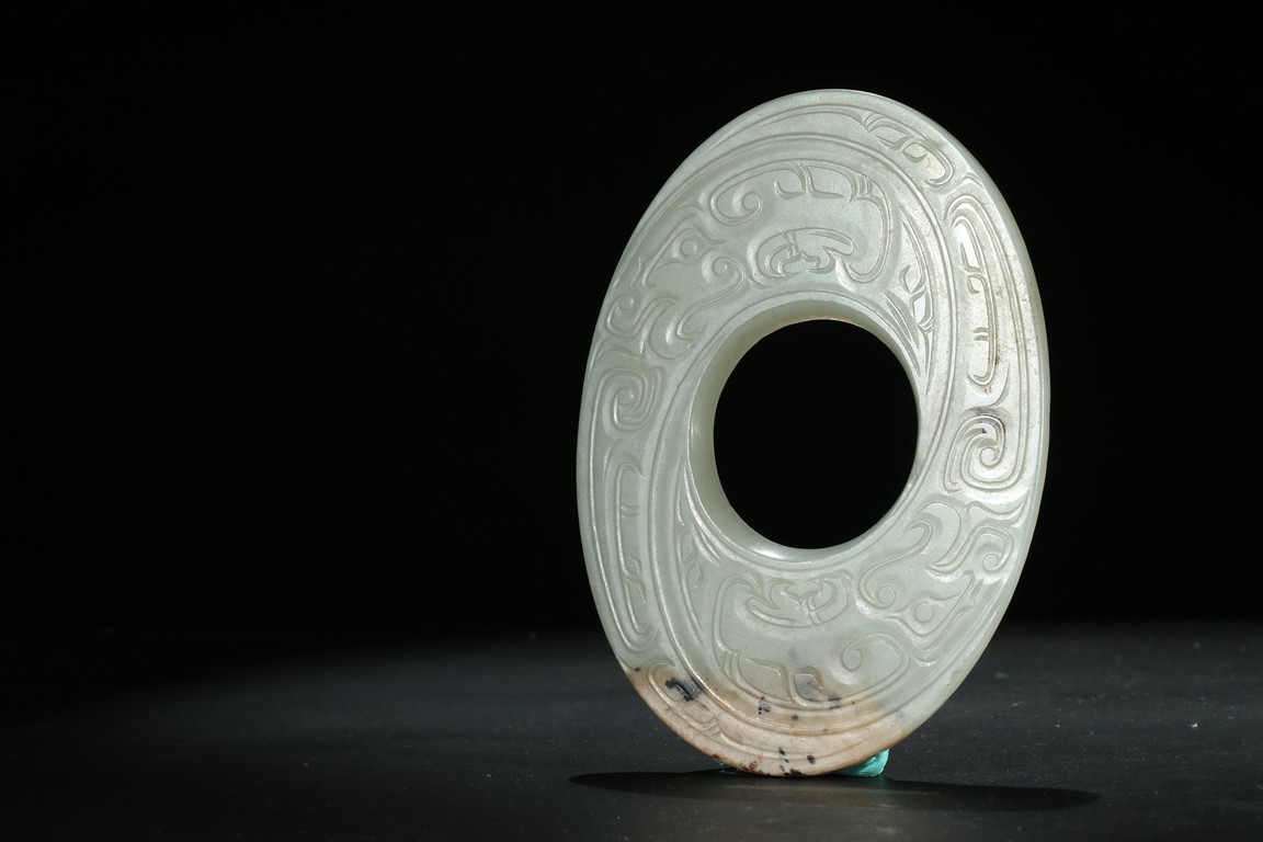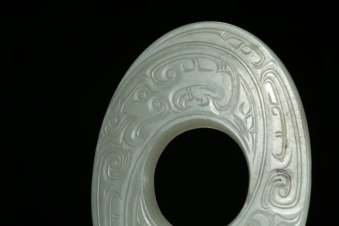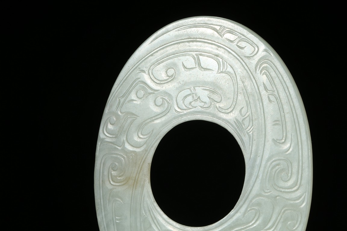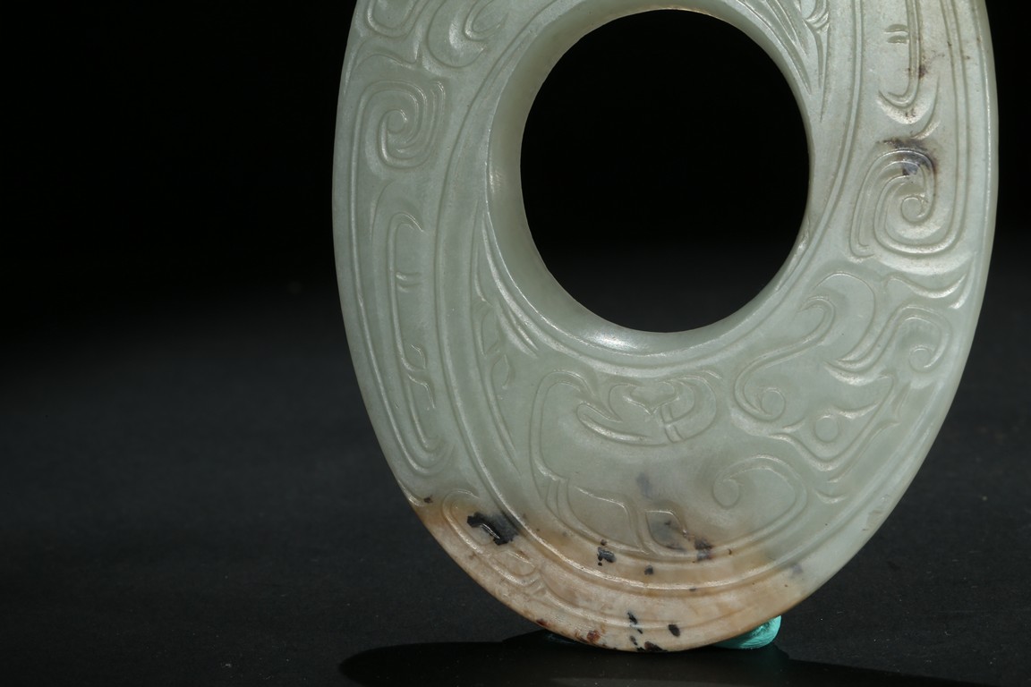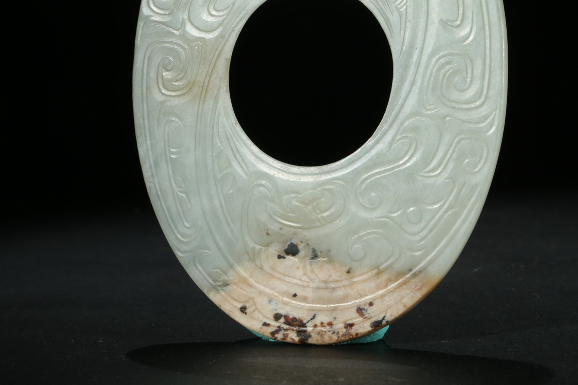 A JADE CARVED 'PHOENIX' OVAL DISC 明 橢圓形鳳紋玉璧