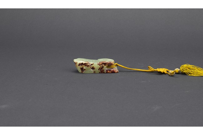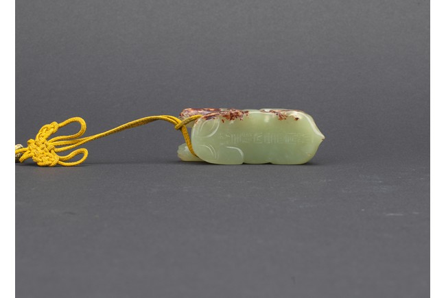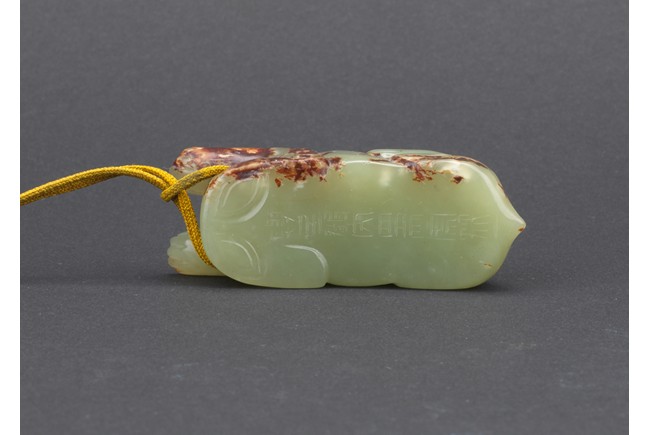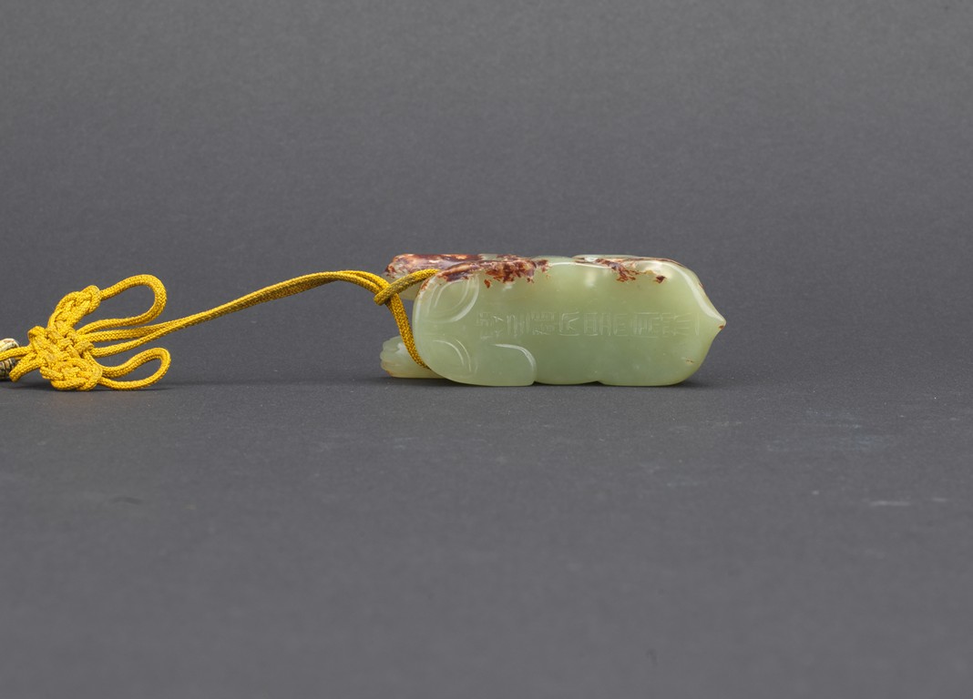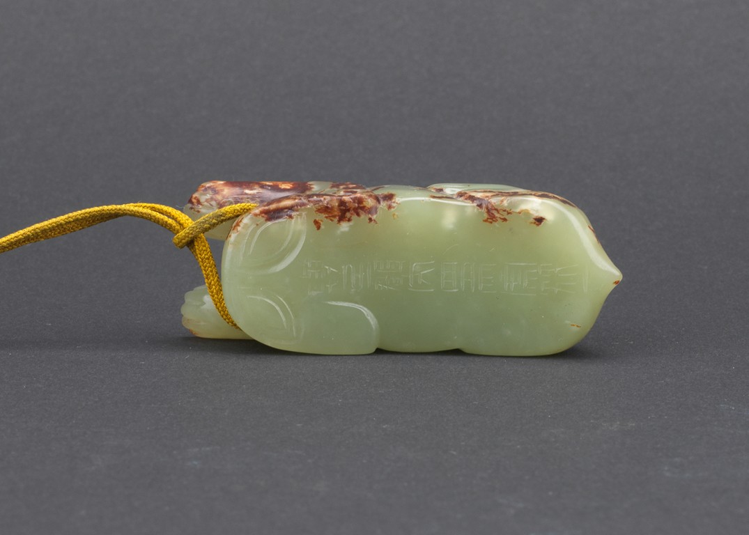 A small green jade mythical beast carving