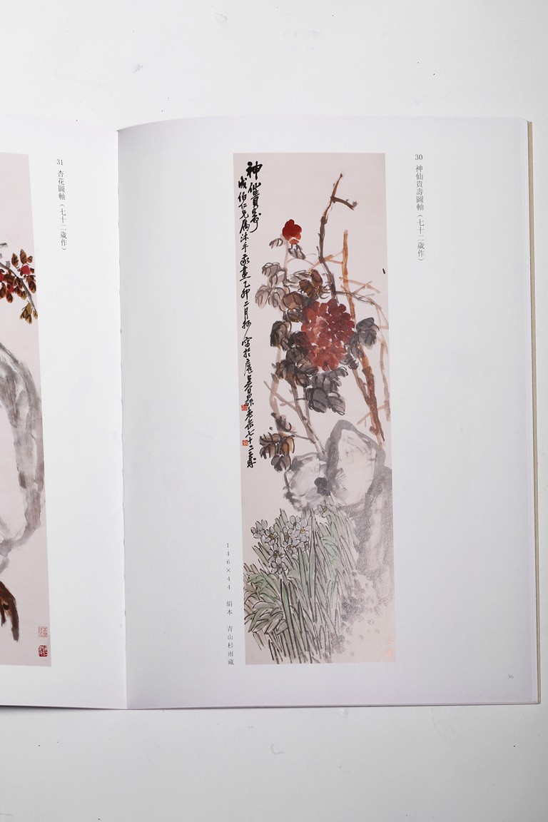 Literature: Collection of Calligraphy and Paintings by Wu Changshuo: Commemorating the One Hundred and Fiftieth Anniversary of the Birth of Wu Fouweng, Makisha Bunkai, 1994 P.36 Provenance: Formerly in the collection of Sanʼu Aoyama 來源: 青山杉雨舊藏 出版:《吳昌碩書畫展—吳缶翁生誕一五〇年紀念》,日本槙社文會,1994年,第36頁。青山杉雨(1912年6月6日-1993年2月13日),日本著名書法家,名文雄,字杉雨,以字行。號寄鶴山民、三車亭主、杉雨逸人等等,別署轟、寄鶴刊、囂齋等。出身於日本愛知縣,後隨父遷居東京。初受族親名古屋書家大池晴嵐影響,並受書法林錦洞指教,初露鋒芒。後入西川寧先生門,三十歲的青山杉雨,從此徹底改變了對書法的觀念。 (西川寧先生是明治時代大書家西川春洞之子,是日本著名書法家、漢學家、書法理論家,為戰後日本書法界的最高指導者之一。)作品獲得日展文部大臣獎( 1963年)、日本藝術院獎(1965年)、勛三等旭日中綬章(1985年)、文化功勞者(稱號)(1988年),1992年獲得日本最高榮譽--文化勛章。先後擔任過大東文化大學、中京大學教授,謙慎書道會理事長、顧問,日展理事、常任理事、顧問(擔任評委19次,為歷來最多),日本藝術院會員,全日本書道連盟特別顧問,創設了日本最大的書法團體"讀賣書法會"並任總務, 多次訪問中國進行書法交流,並將中國古代藏品交流展出,在中日文化交流中做出了卓越貢獻