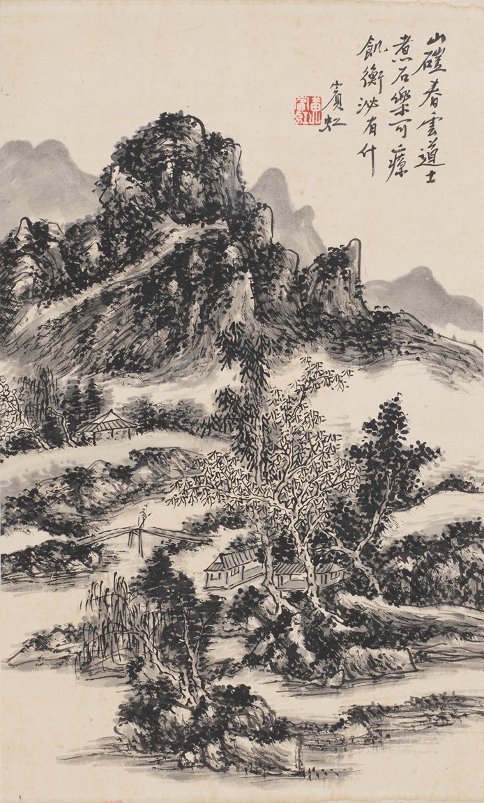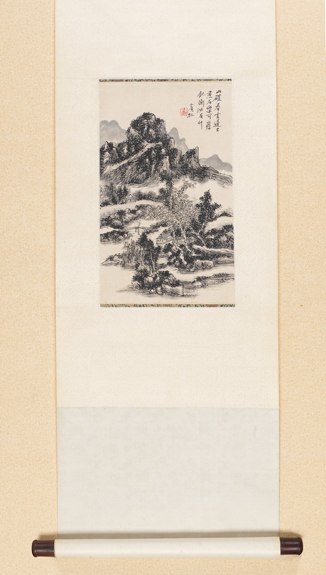 Ink on paper. Landscape. Hanging scroll. Signed Binhong, and with one seal of the artist.