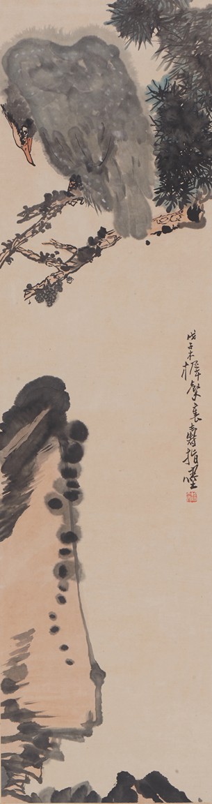 PAN TIANSHOU: COLOR AND INK ON PAPER 'EAGLE' PAINTING 潘天壽 松鷹 立軸