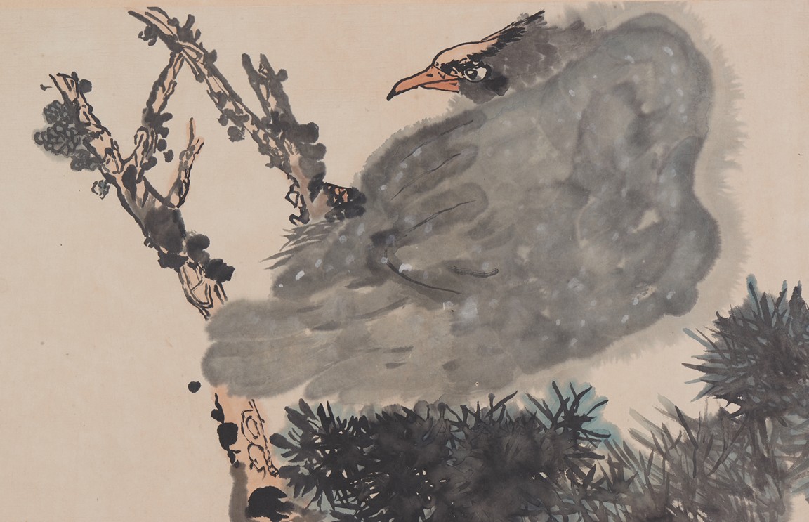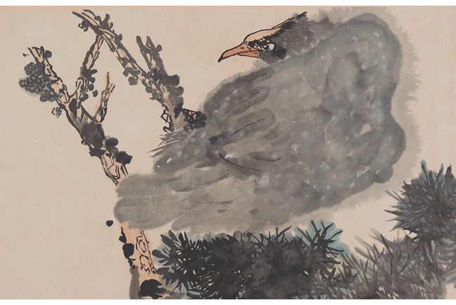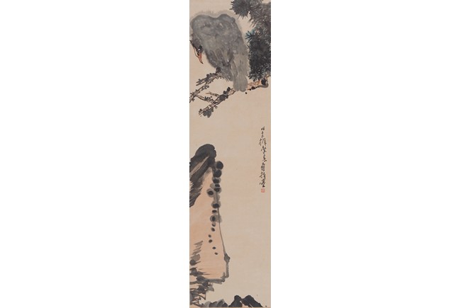 Color and ink on paper. Eagle. Hanging scroll.Inscribed with one seal of the artist.