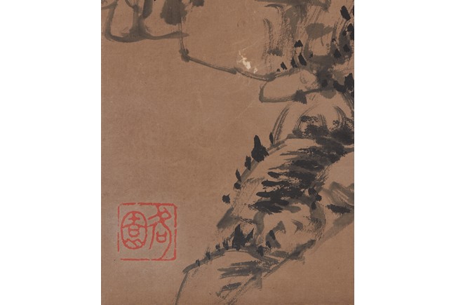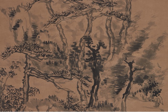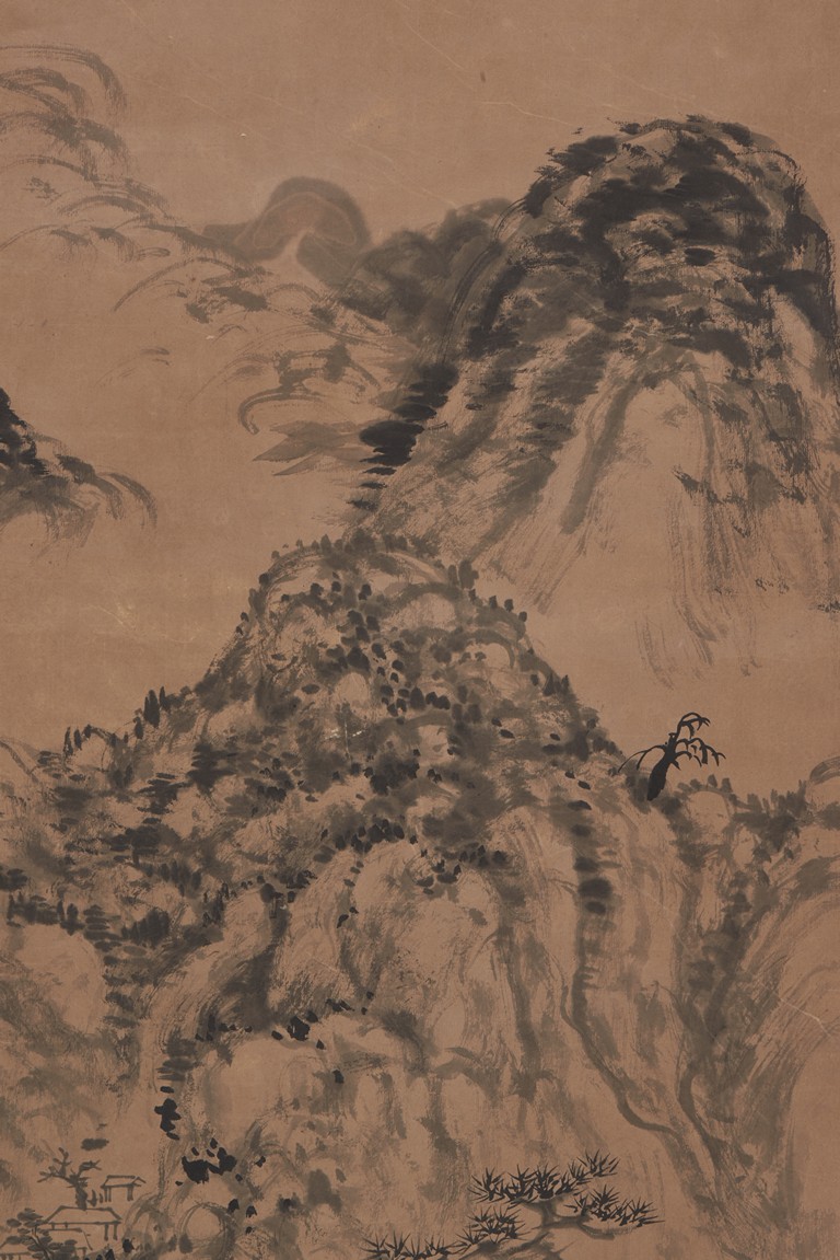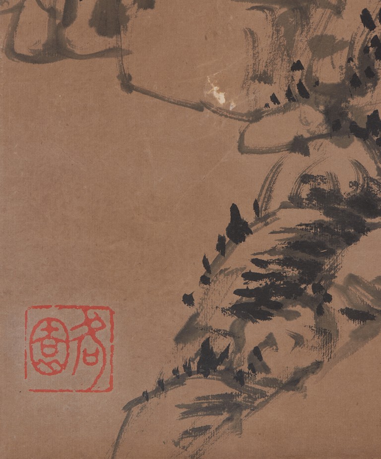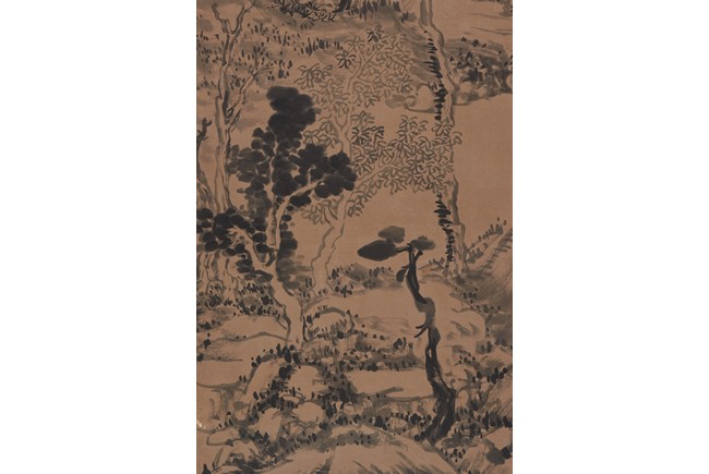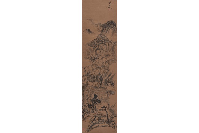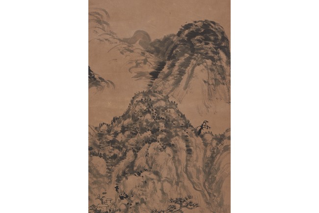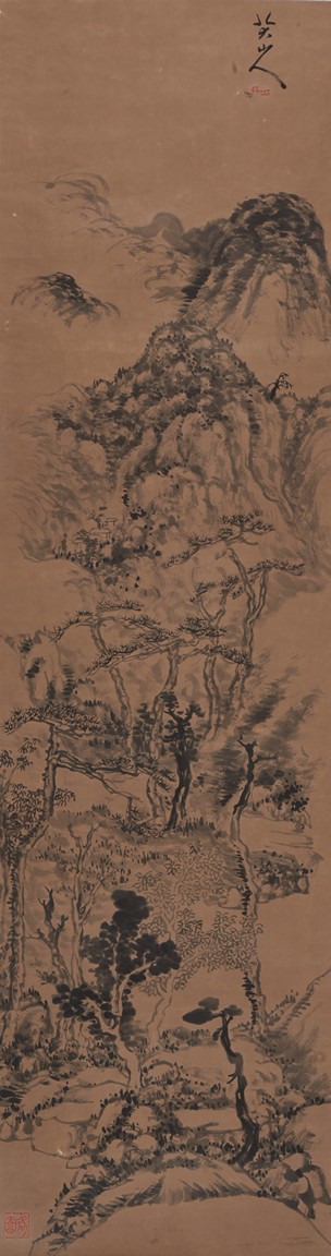 Ink on paper. Landscape. Hanging scroll. Signed Ba Da Shan Ren, with two seals of the artist. Attributed to Zhu Da.