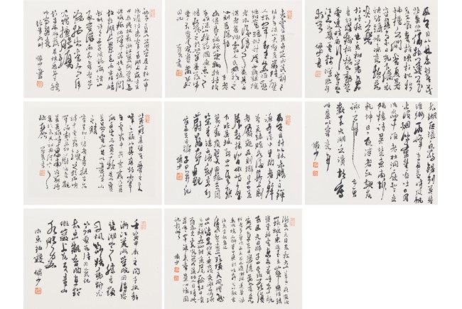 Ink on paper. cursive script. Eight leaves album. Inscribed and signed, with sixteen seals of the artist.