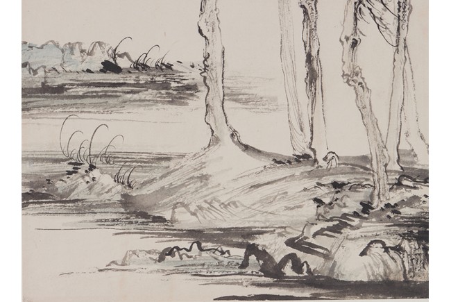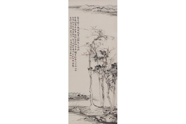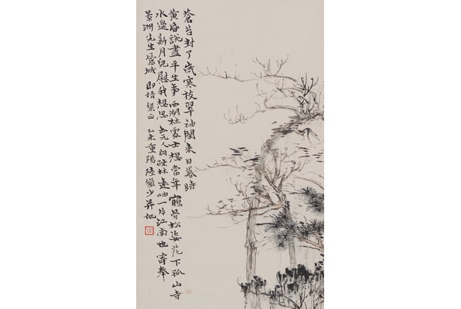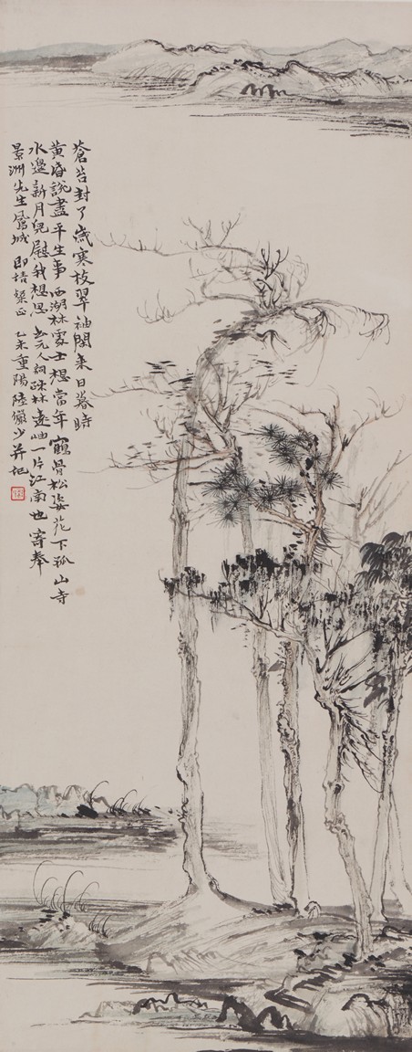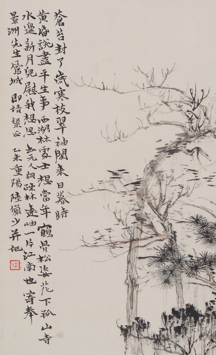 Color and ink on paper. Landscape. Hanging scroll. Inscribed and signed Lu Yanshao,with one seal of the artist.