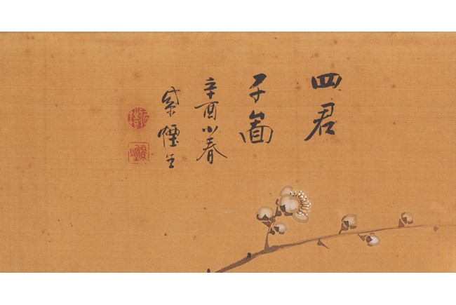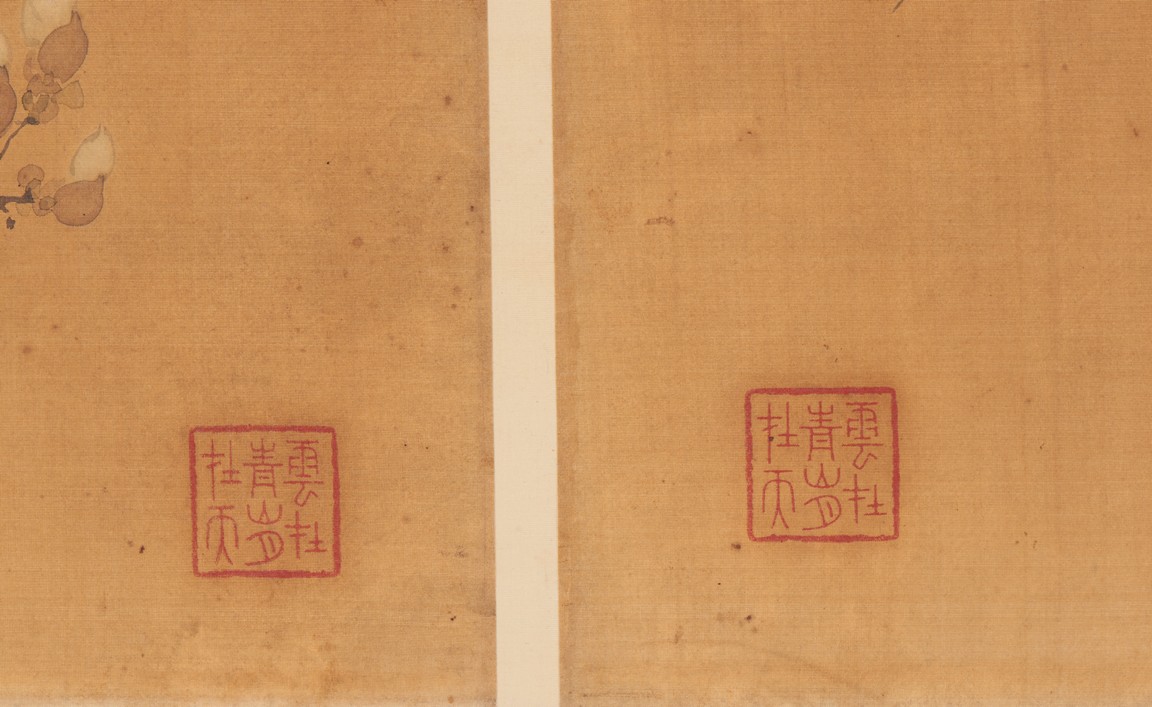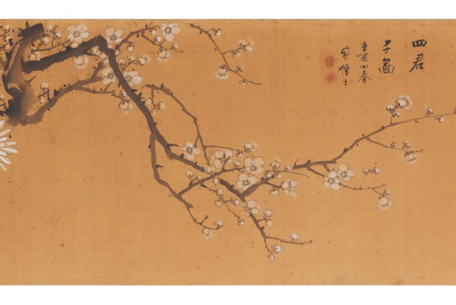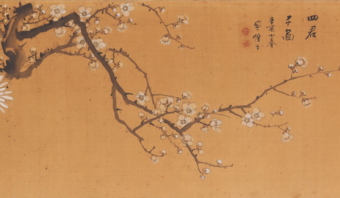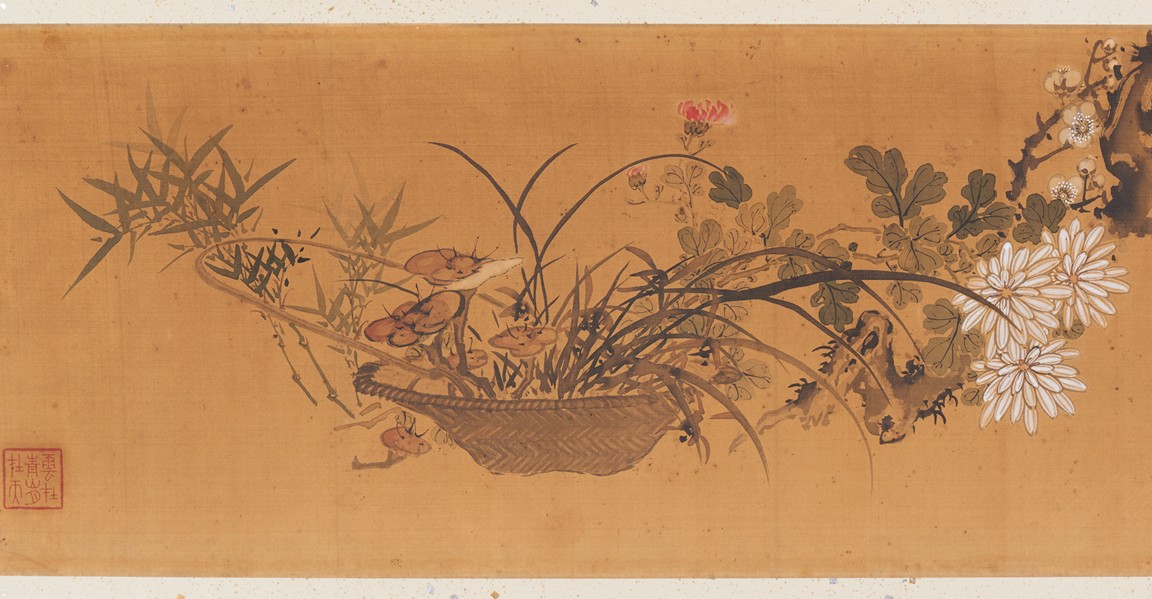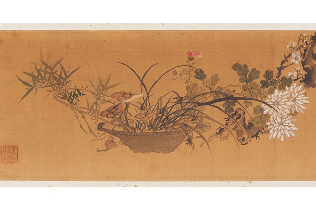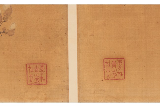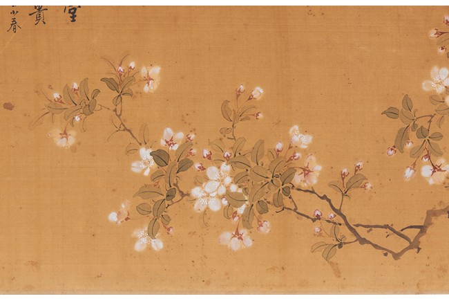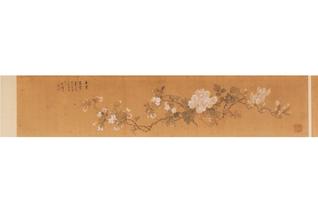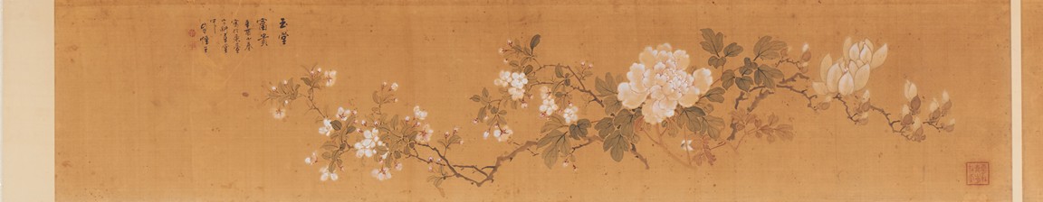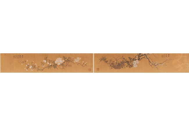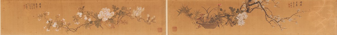 Color and ink on silk. Flowers. Two painting handscroll. Each inscribed and signed Zi Yan, with three seals of the artist.