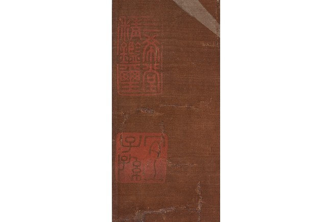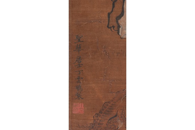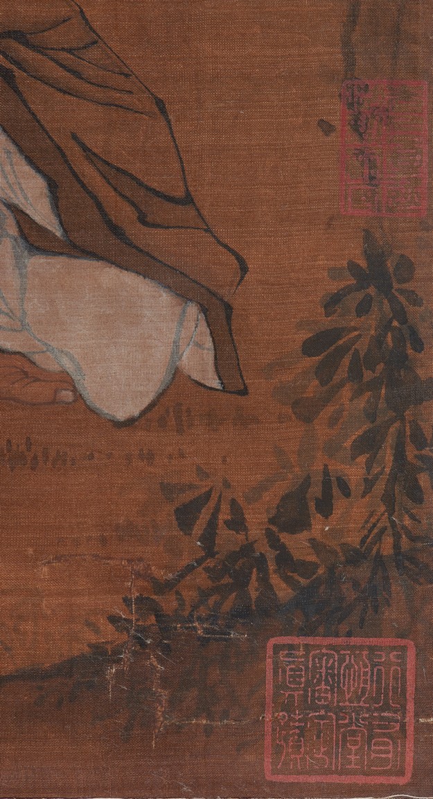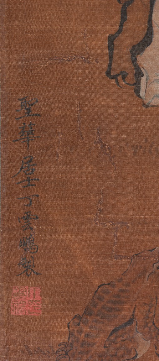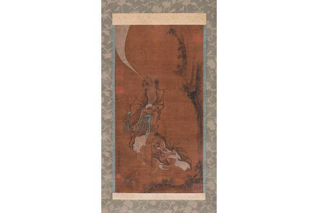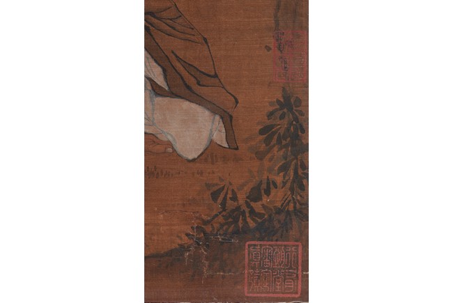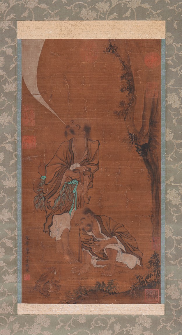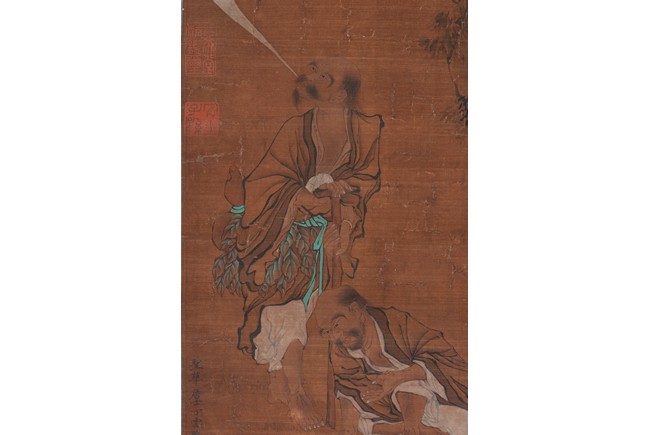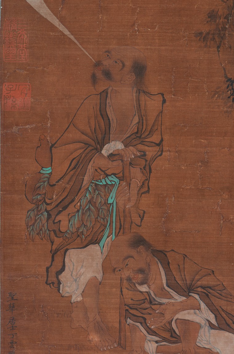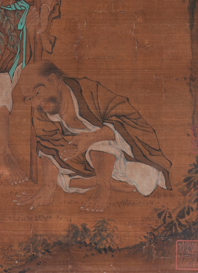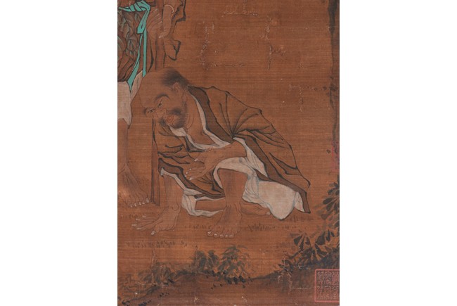 Color and ink on paper. Luohan. Hanging scroll. Inscribed and signed Ding Yunpeng, with three seals of the artist and collectors.