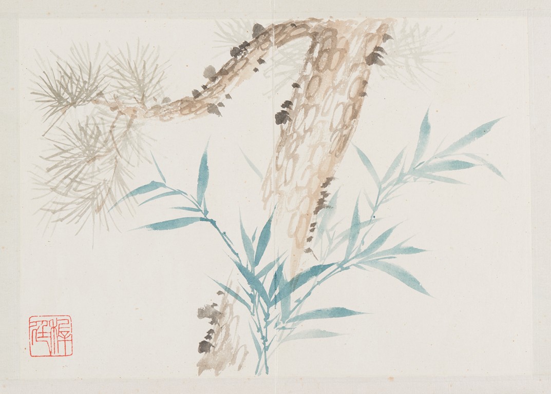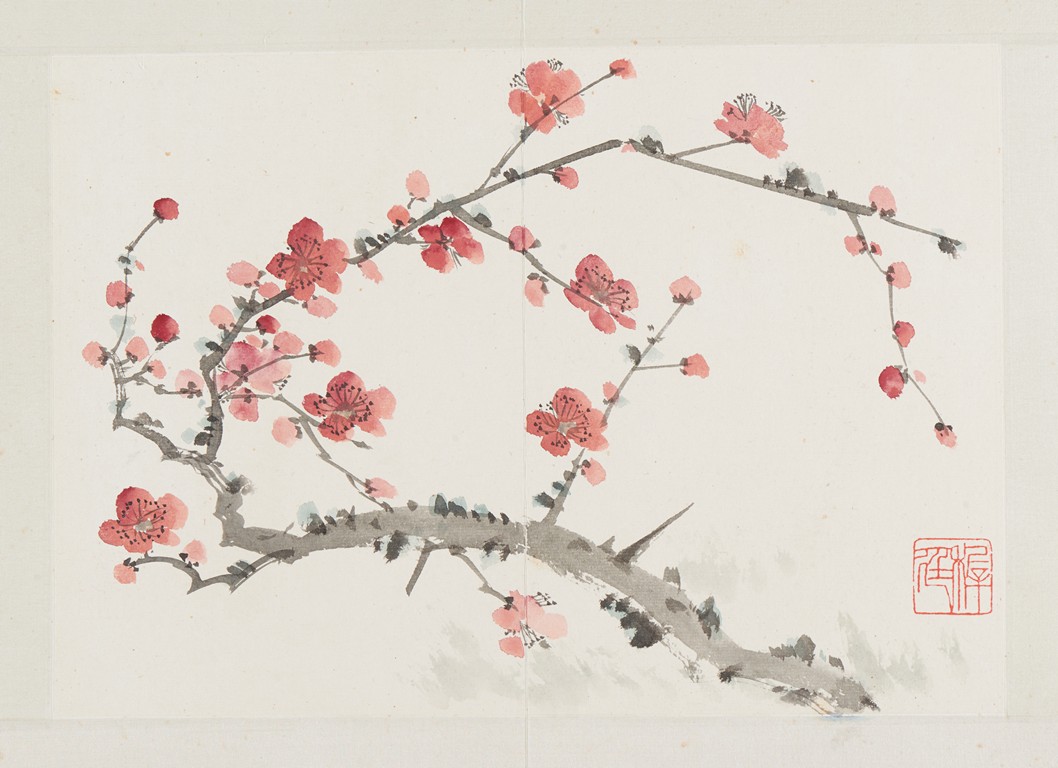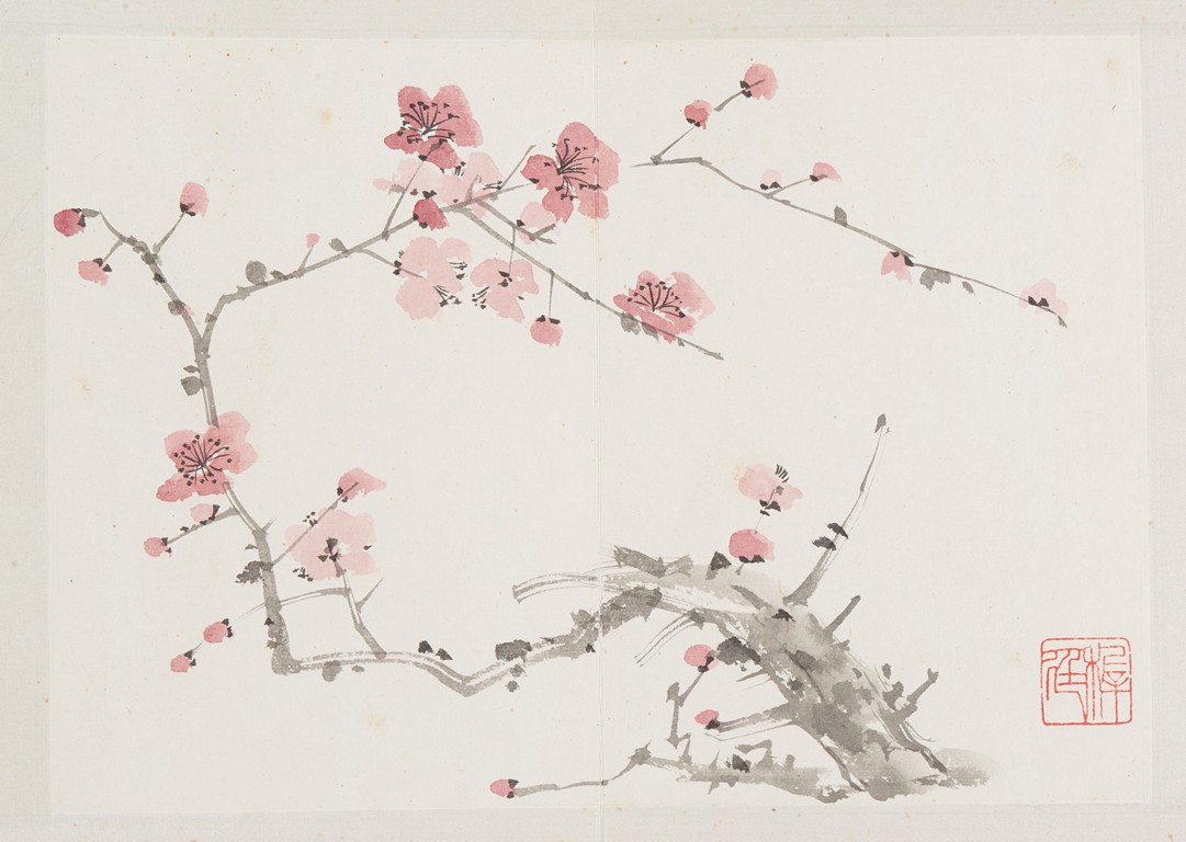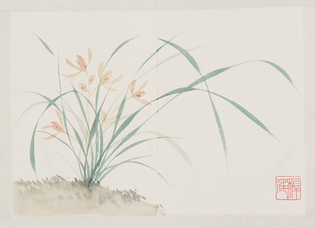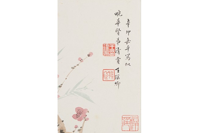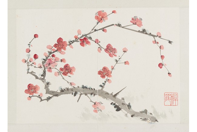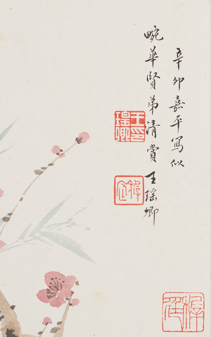 Color and ink on paper. Flowers. Ten Leave album. Frontpiece inscribed and signed Mei Lanfang with one seal of the artist. Each painting with one to two seal marks of the artist, one inscribed and signed Wang Yaoqing and with three seals of the artist.