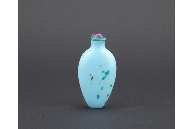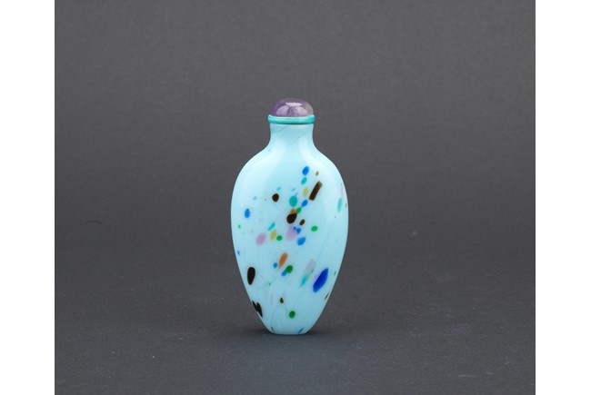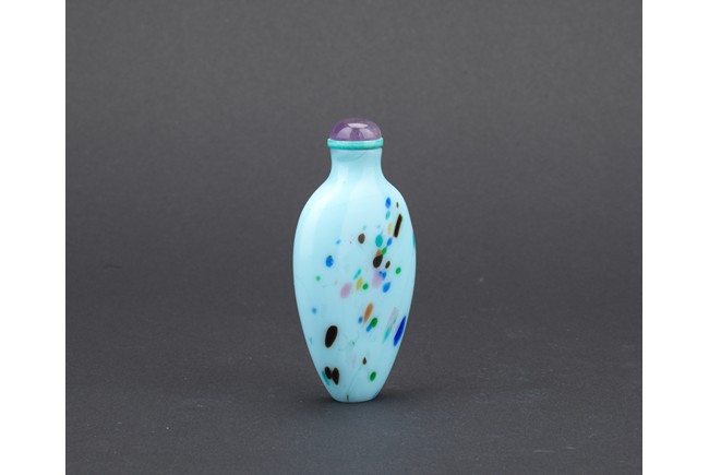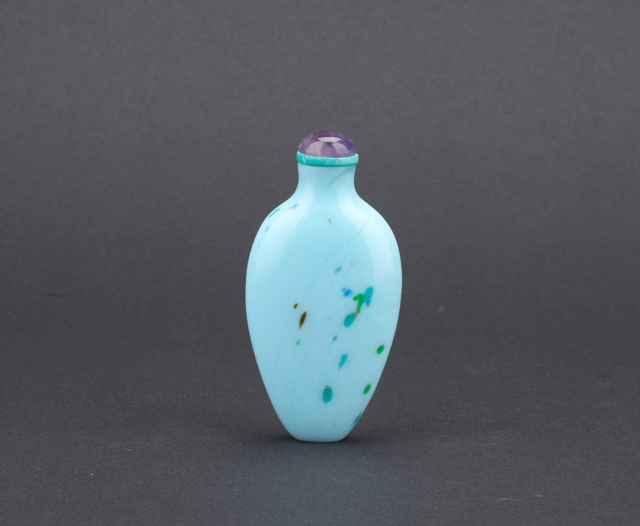 AN OPAQUE BLUE DOTTED GLASS SNUFF BOTTLE 藍料多彩斑點自然紋鼻煙壺